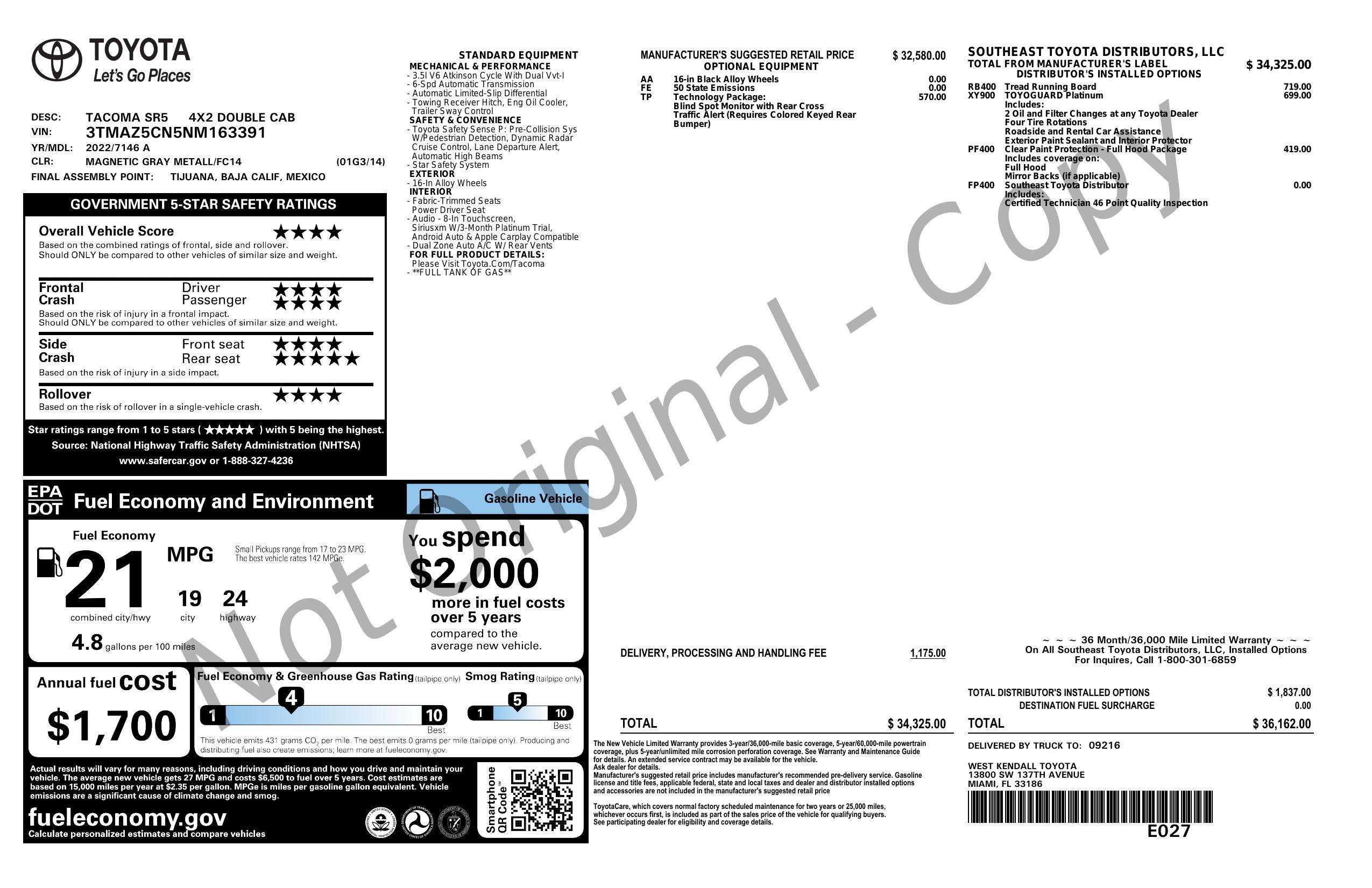 2022 Toyota Tacoma 2 Wd Double Cab 5' Bed V6 At (Natl)