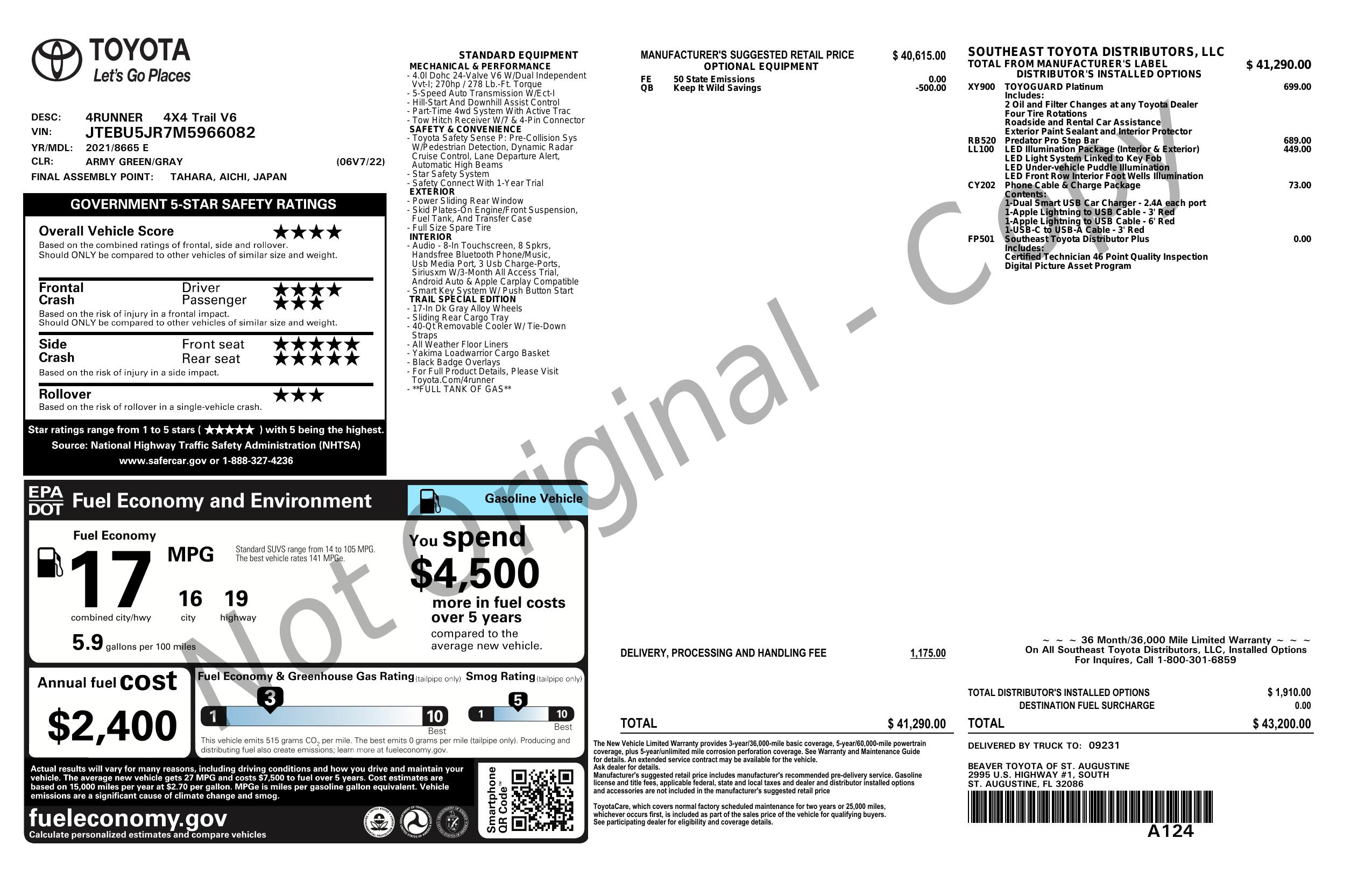 2021 Toyota 4 Runner 4 Wd (Natl)