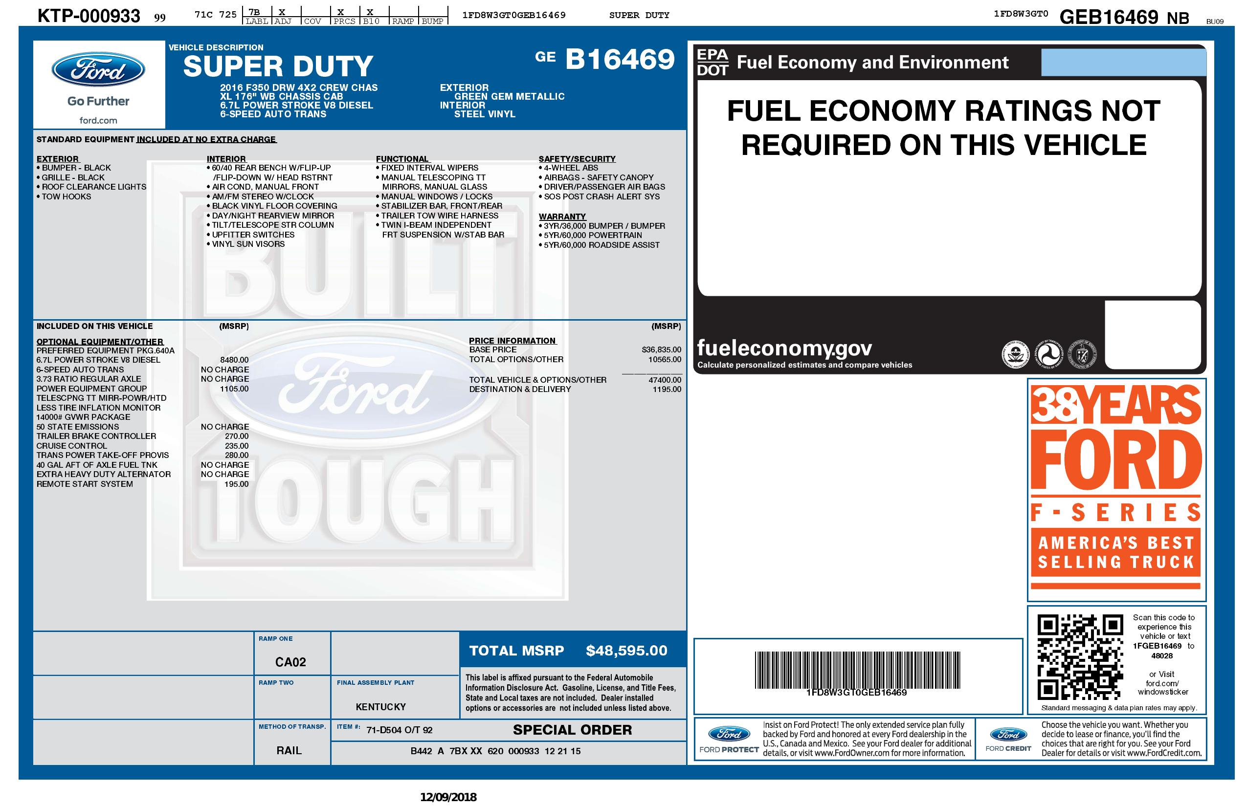 2016 Ford Super Duty F 350 Drw 2 Wd Crew Cab 176" Wb 60" Ca