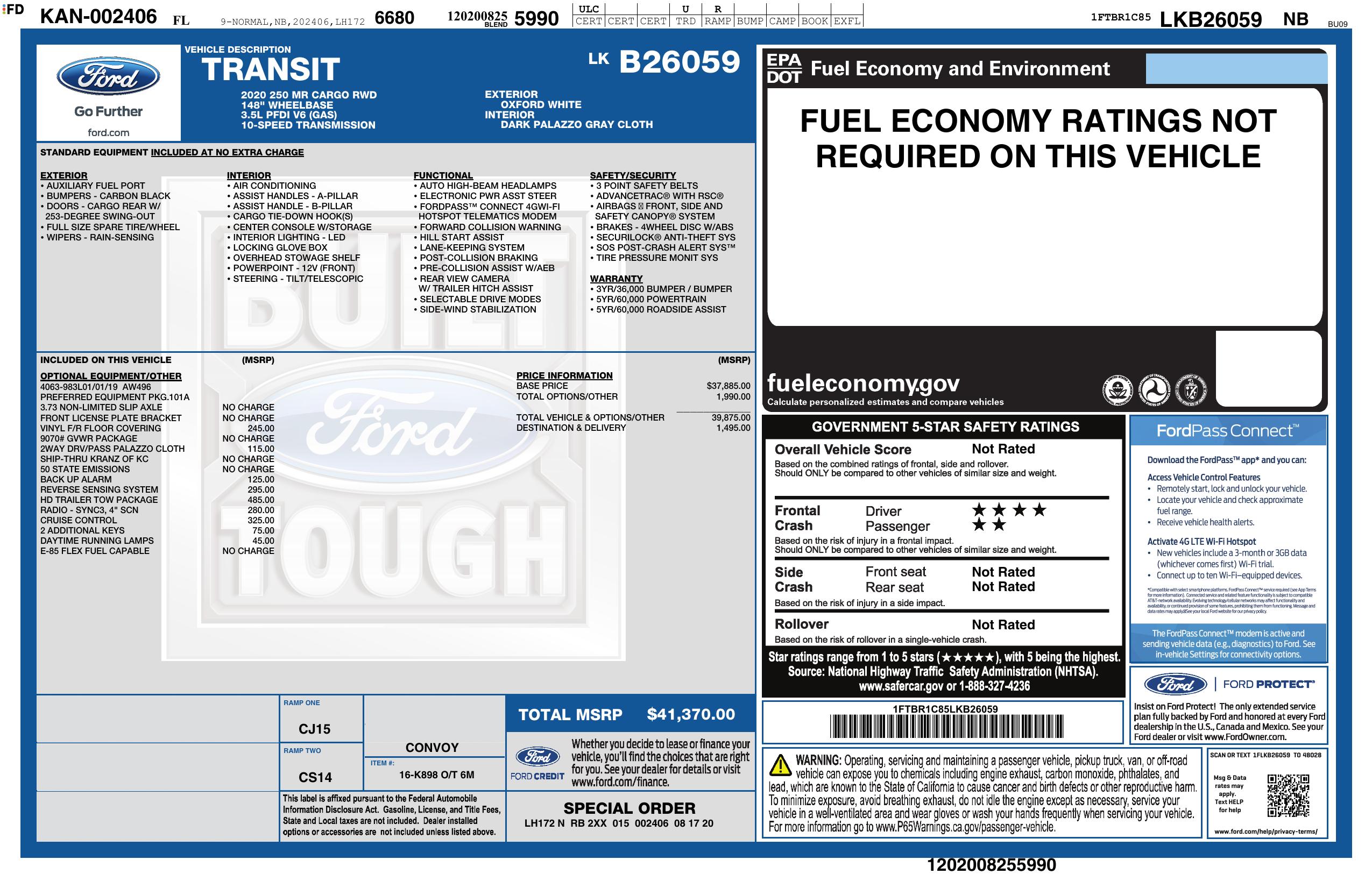 2020 Ford Transit Cargo Van T 250 Med Rf 9070 Gvwr Rwd