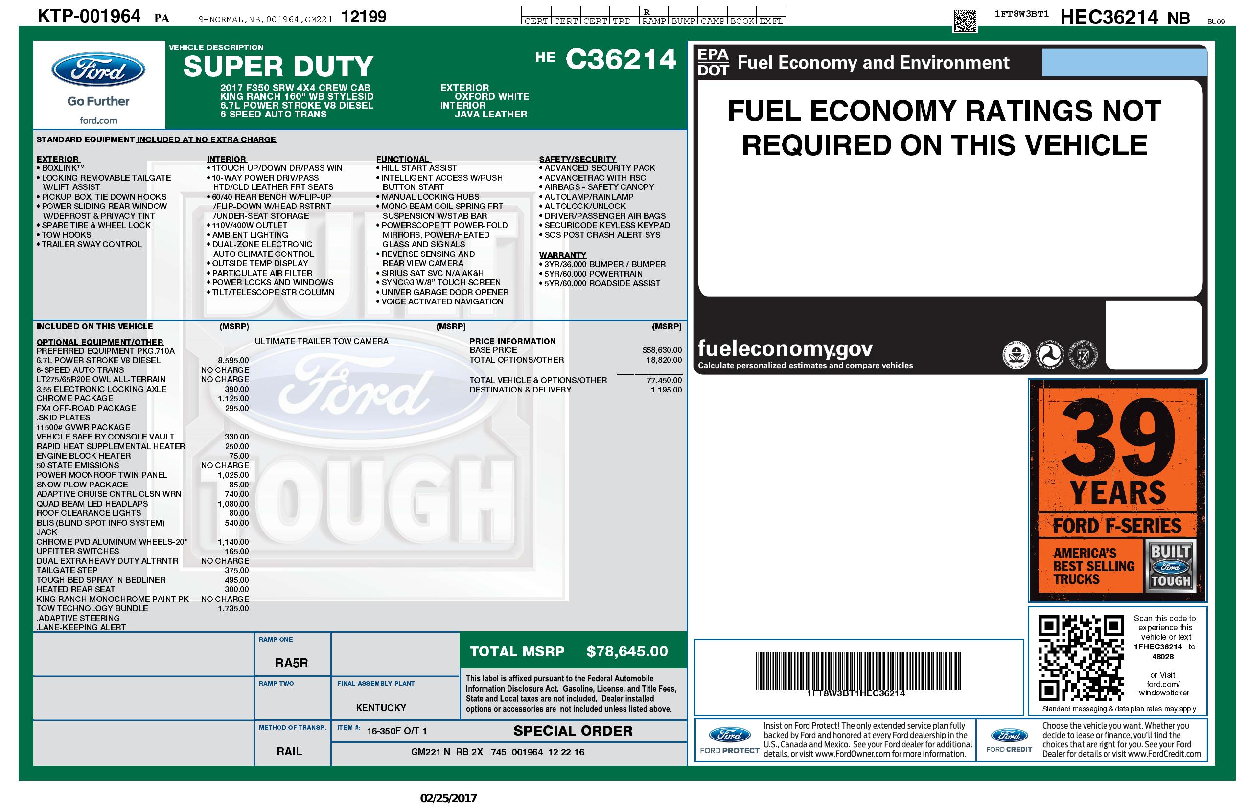 2017 Ford Super Duty F 350 Srw 4 Wd Crew Cab Box