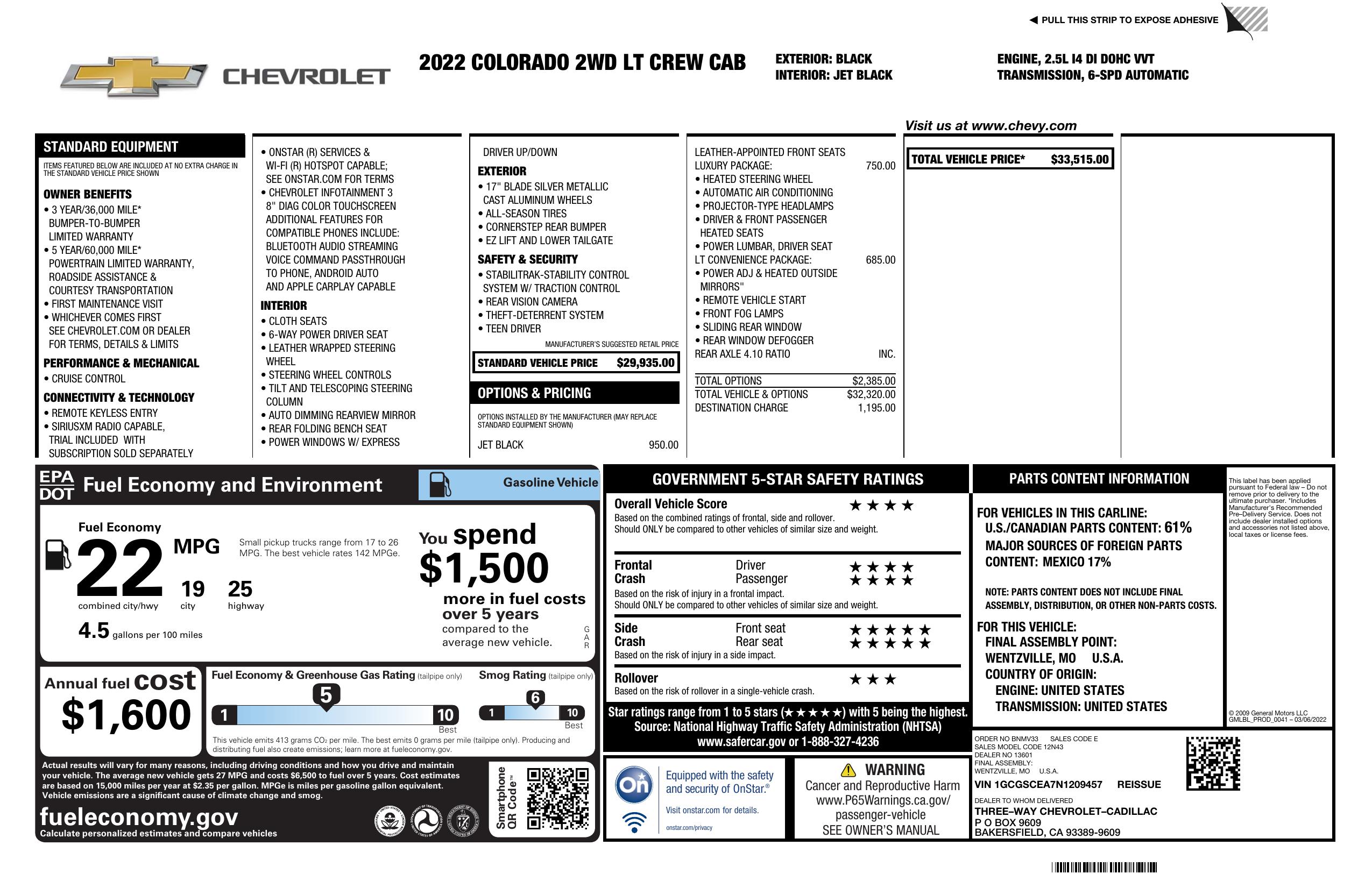 2022 Chevrolet Colorado 2 Wd Crew Cab 128" Lt