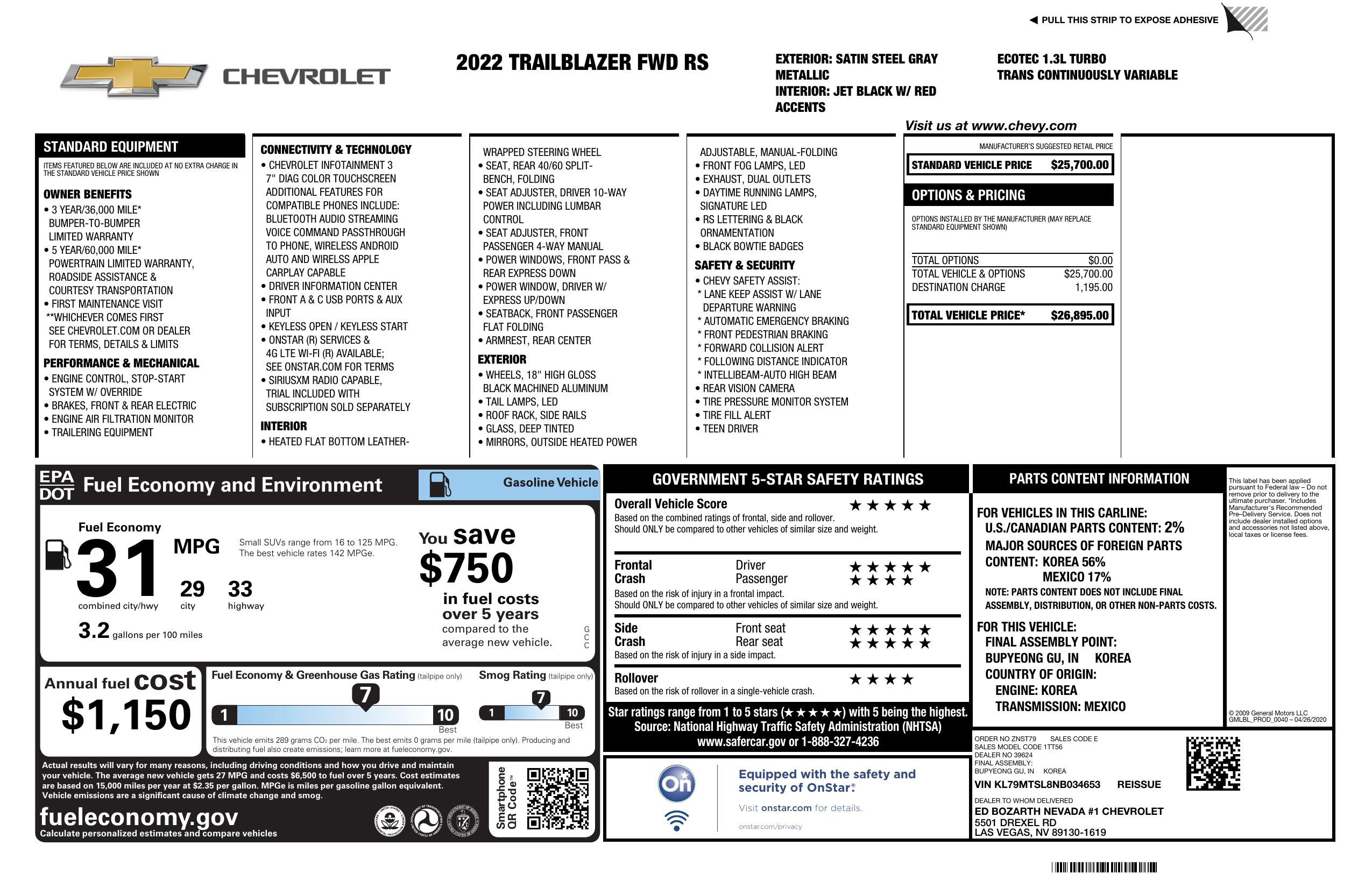 2022 Chevrolet Trailblazer Fwd 4dr Rs