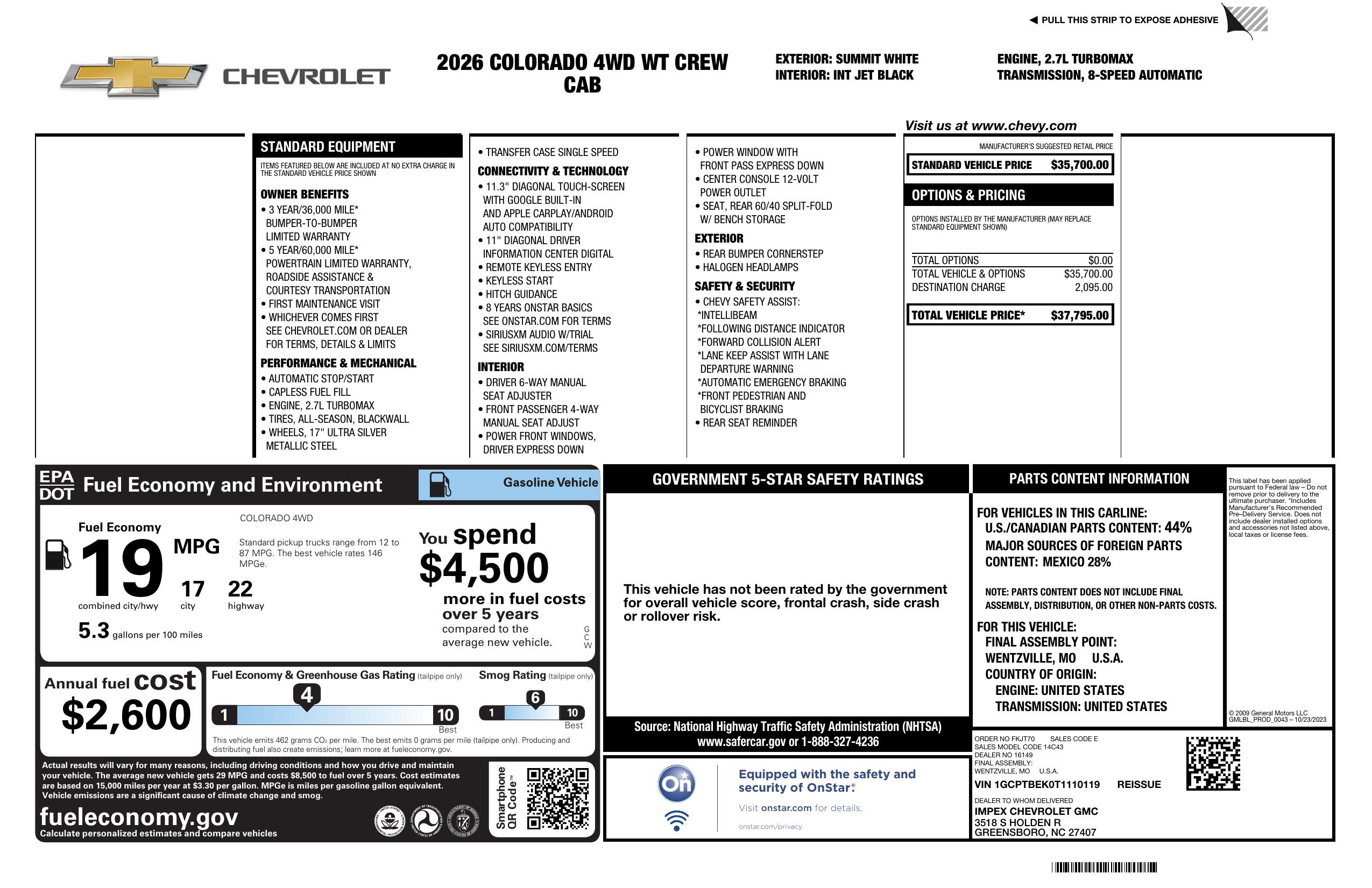 2026 Chevrolet Colorado 4 Wd Crew Cab Wt