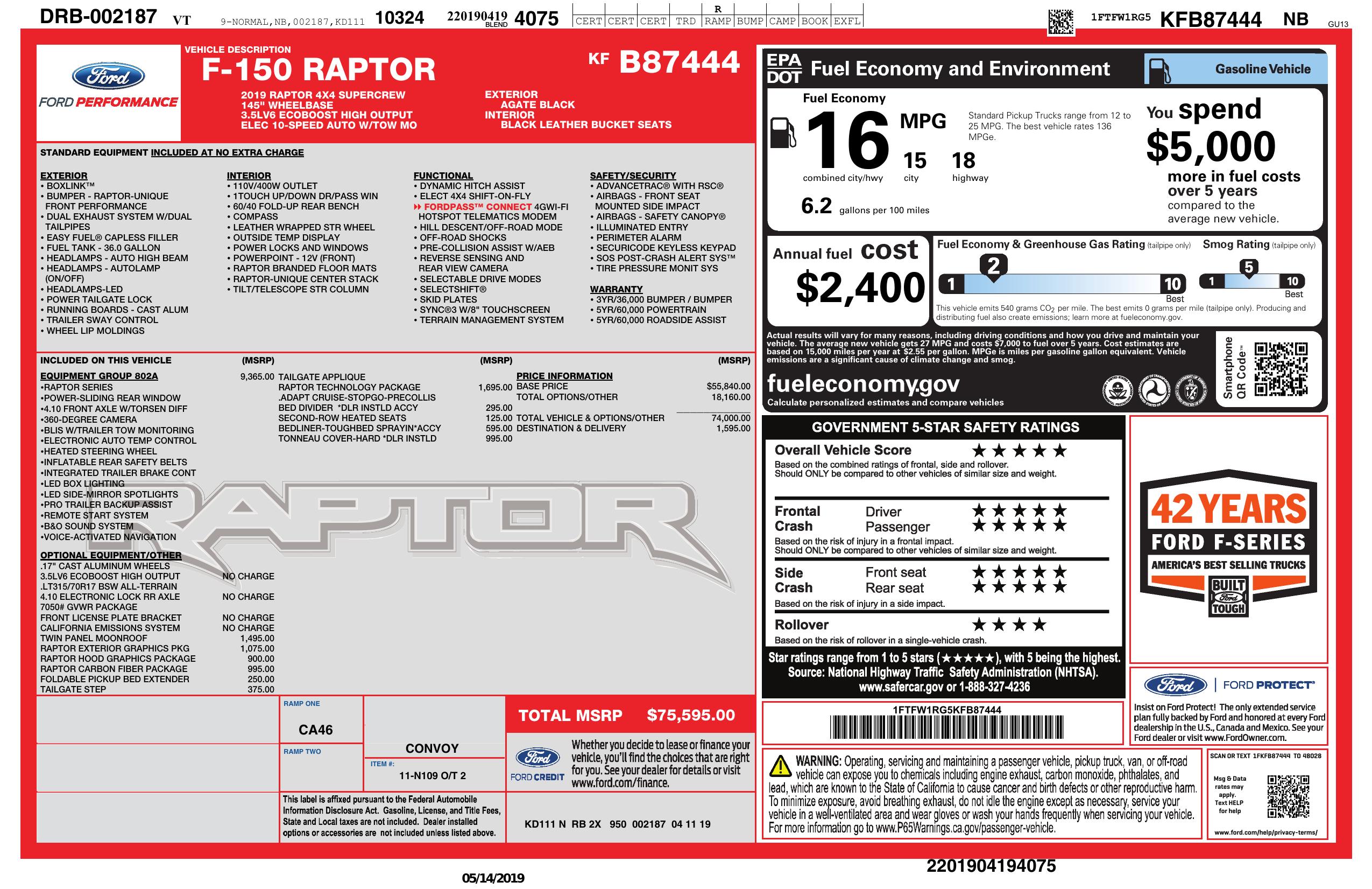 2019 Ford F 150 Raptor Pickup 4 D 5 1/2 Ft