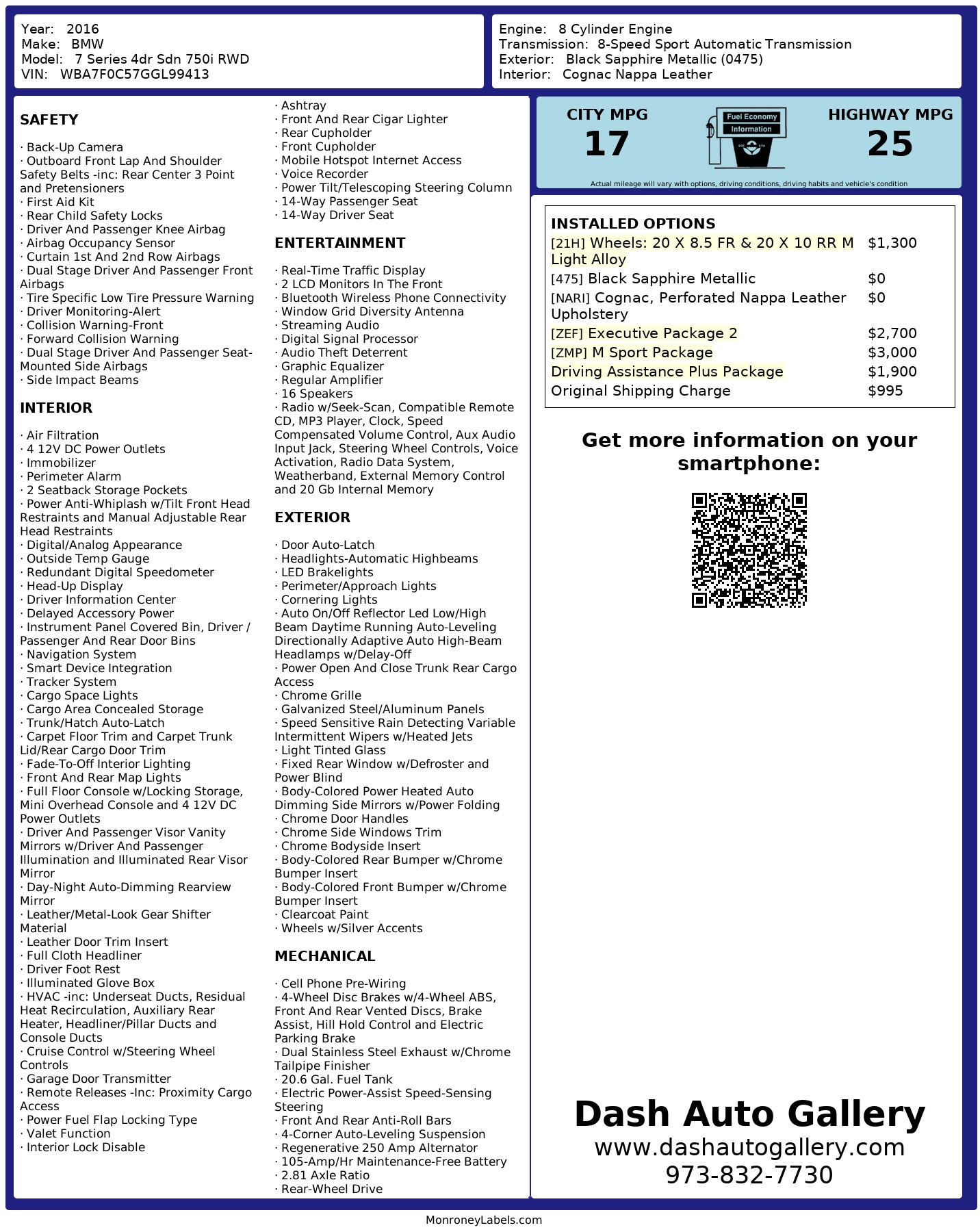 2016 BMW 7 Series 4dr Sdn 750i Rwd
