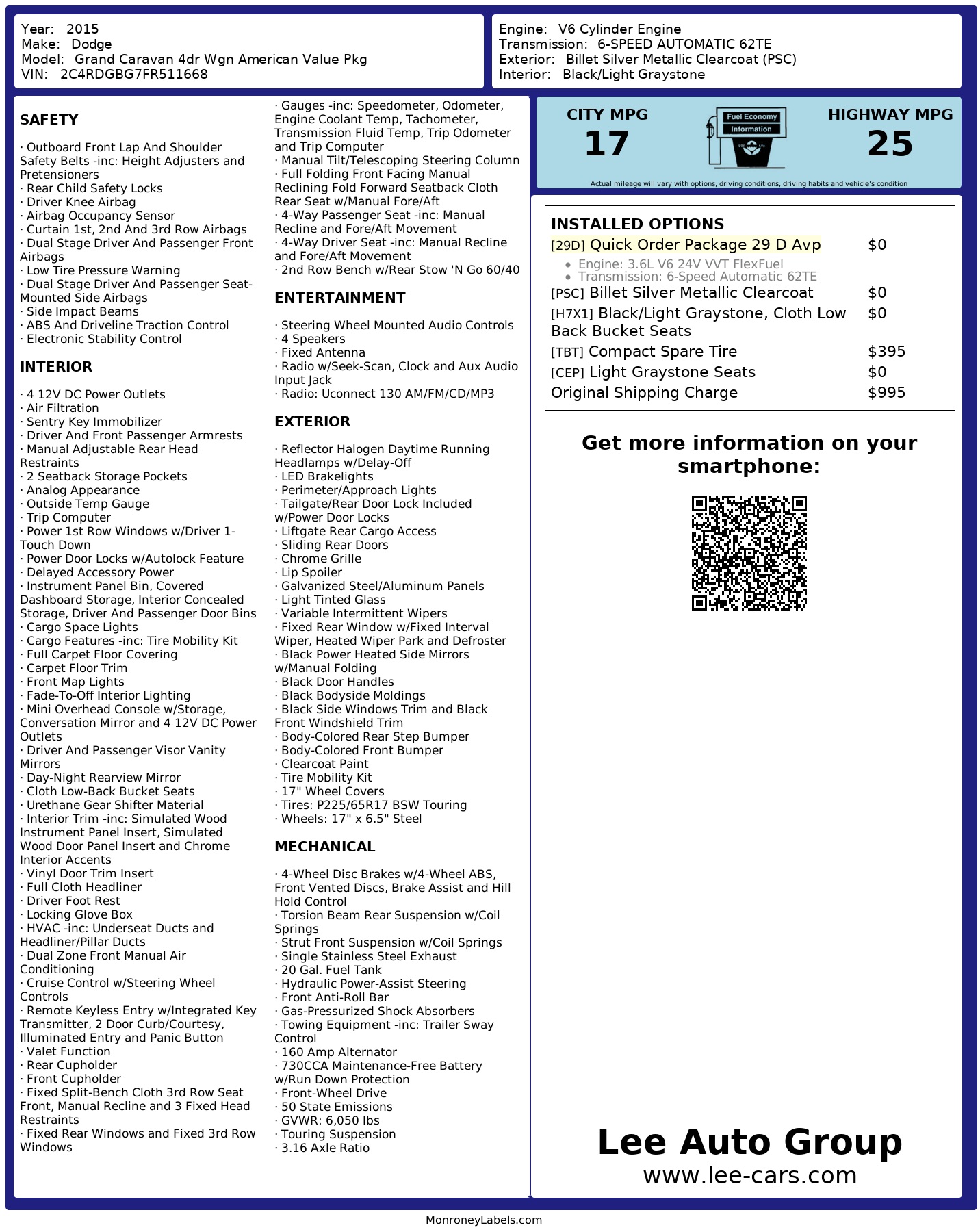 2015 Dodge Grand Caravan 4dr Wgn American Value Pkg