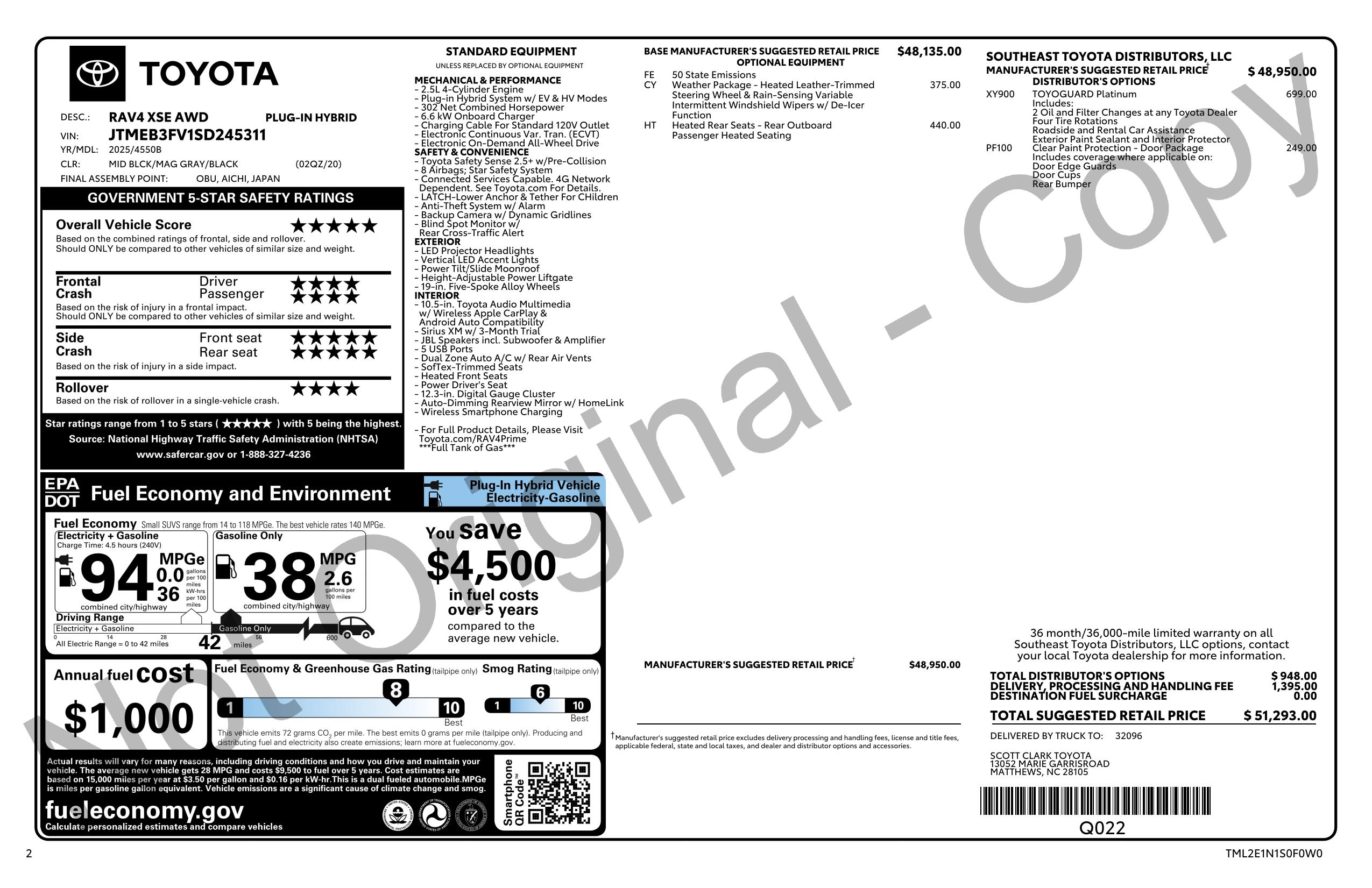 2025 Toyota Rav4 Plug In Hybrid Xse (Natl)