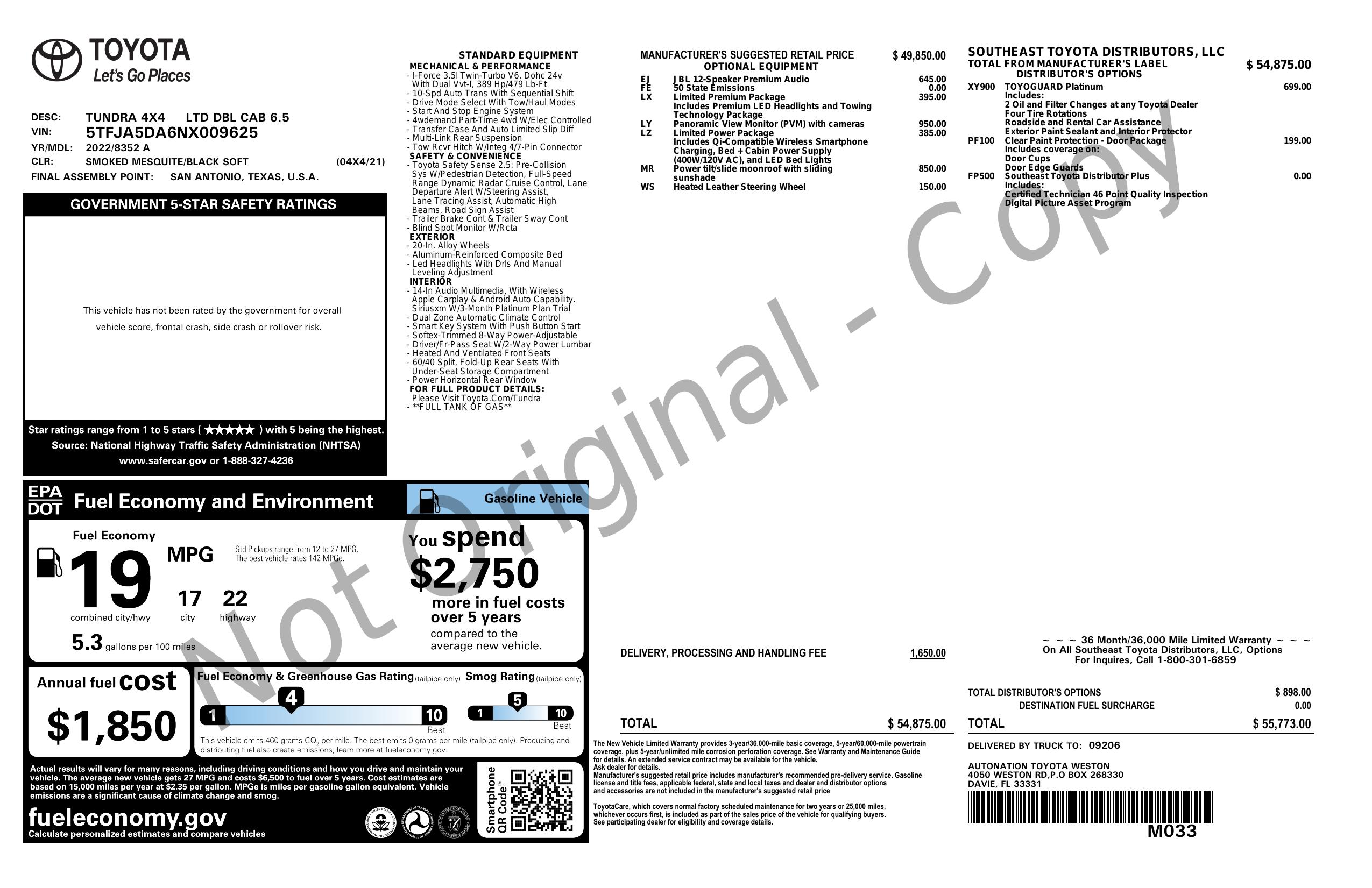 2022 Toyota Tundra 4 Wd Limited Double Cab 6.5' Bed (Natl)
