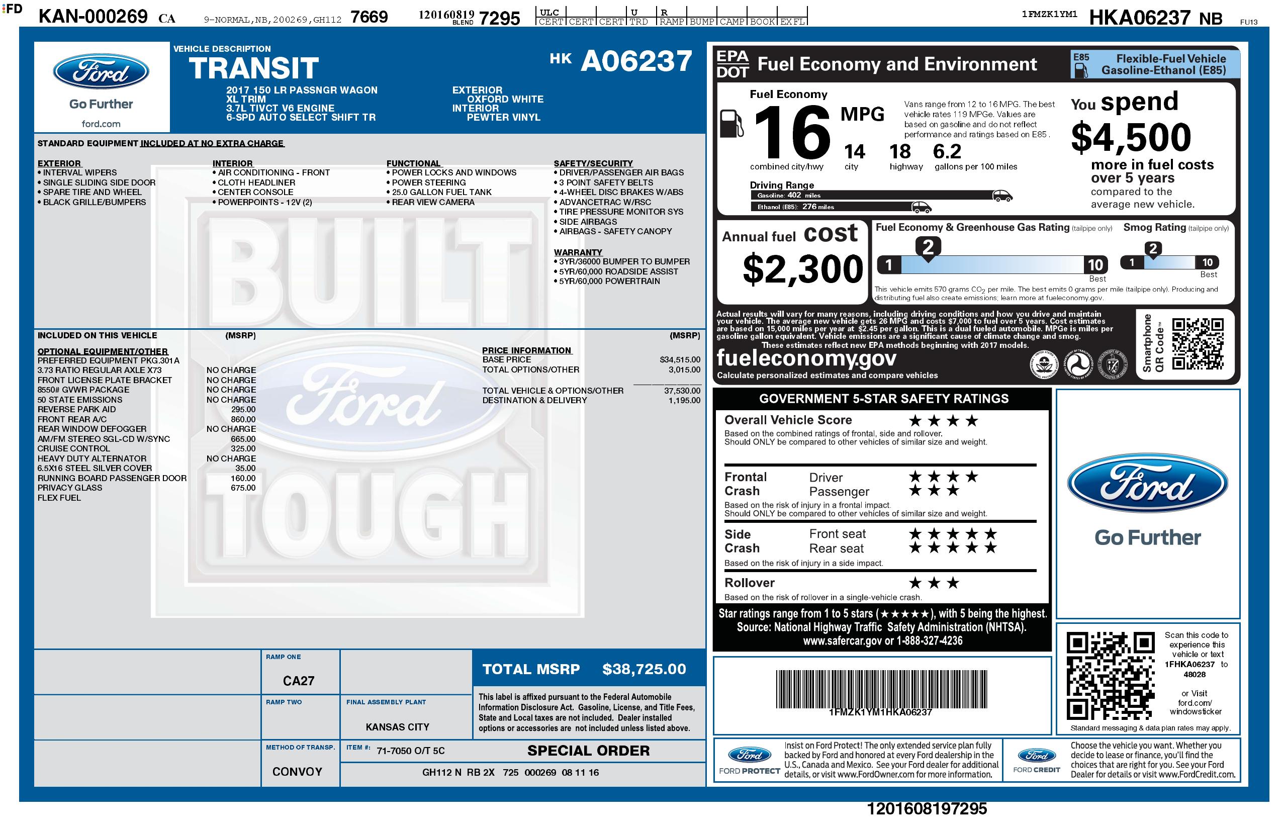 2017 Ford Transit Wagon T 150 130" Low Roof Sliding Rh Dr