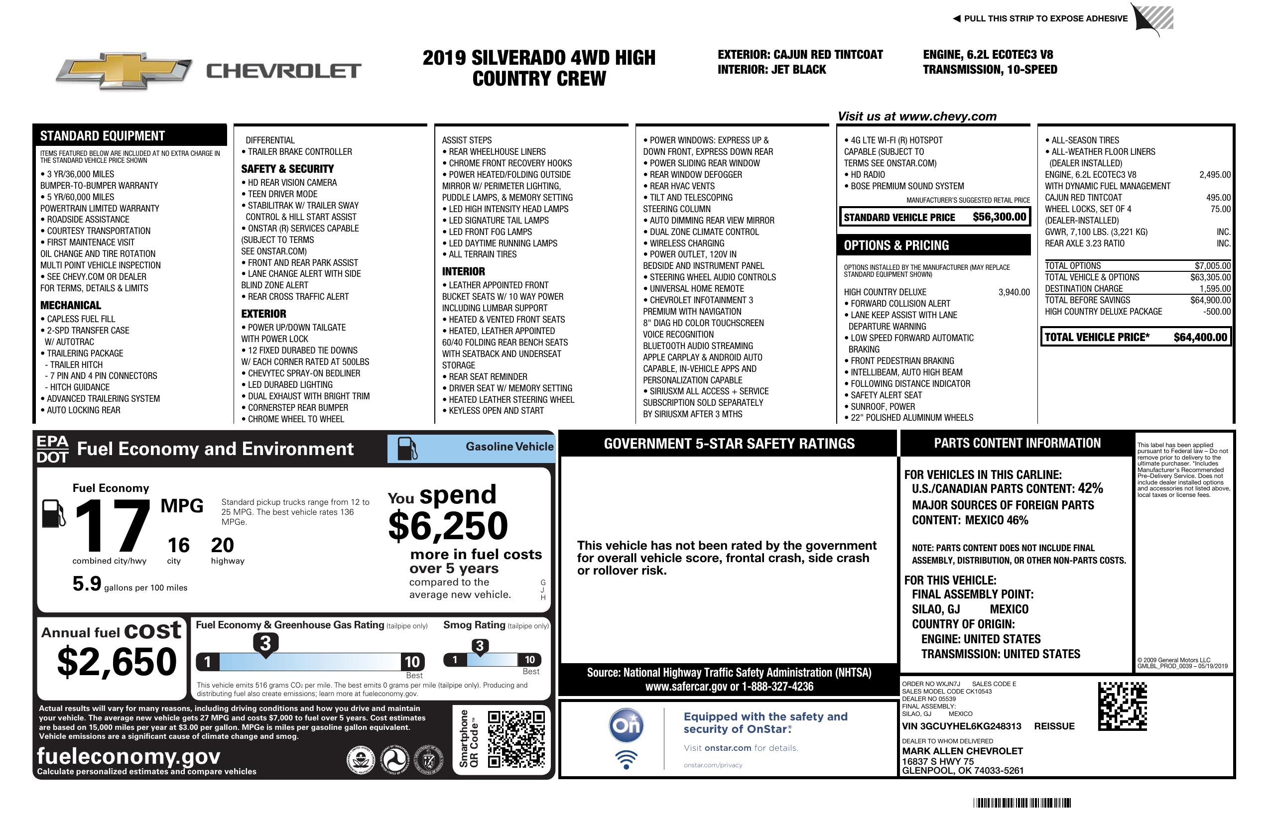 2019 Chevrolet Silverado 1500 4 Wd Crew Cab 147" High Country