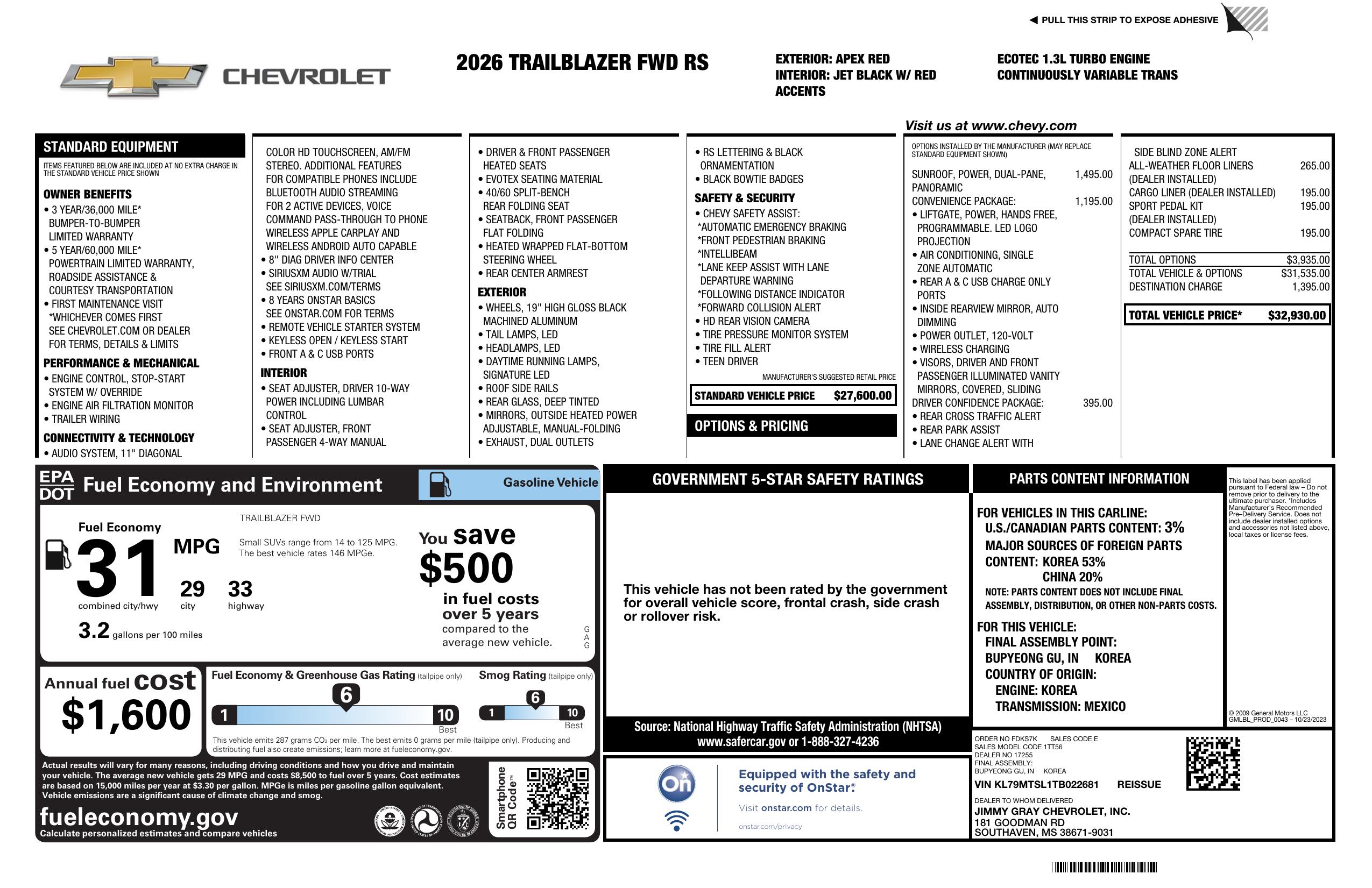 2026 Chevrolet Trailblazer Fwd 4dr Rs