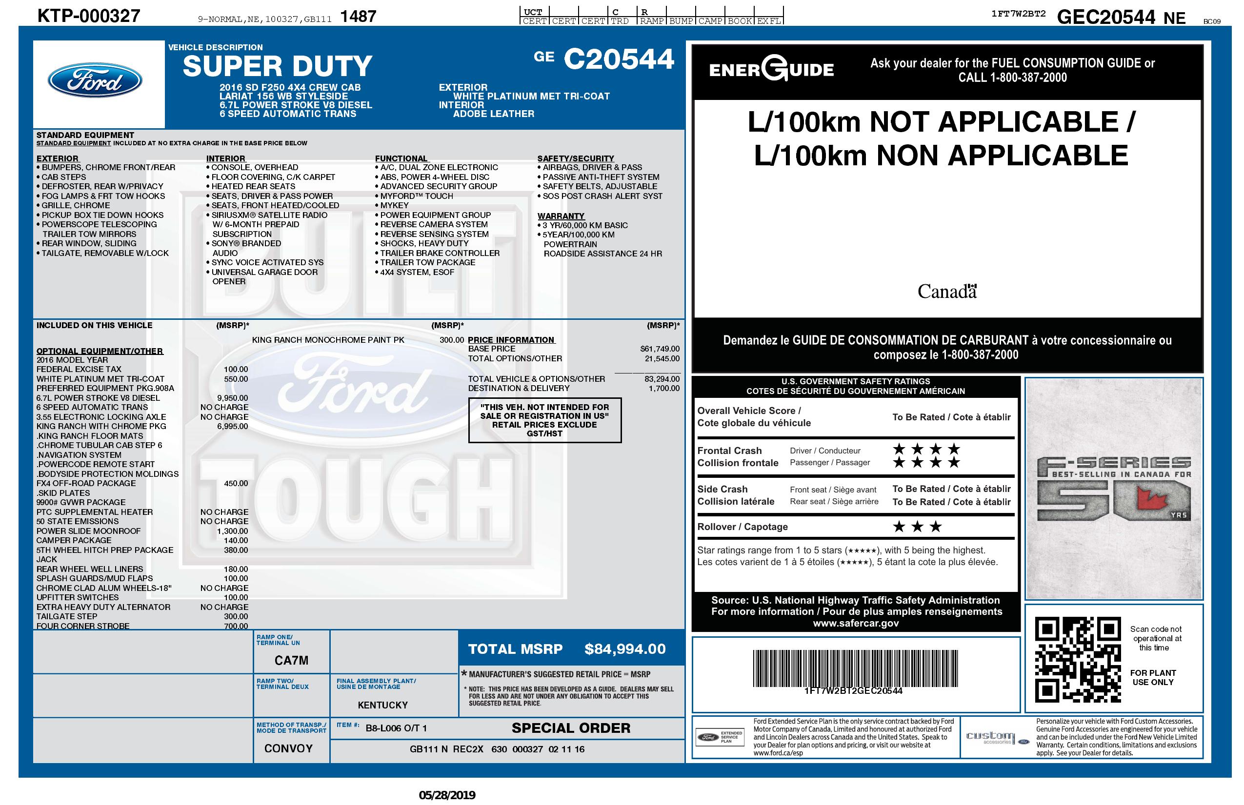 2016 Ford Super Duty F 250 Srw 4 Wd Crew Cab 156" Lariat