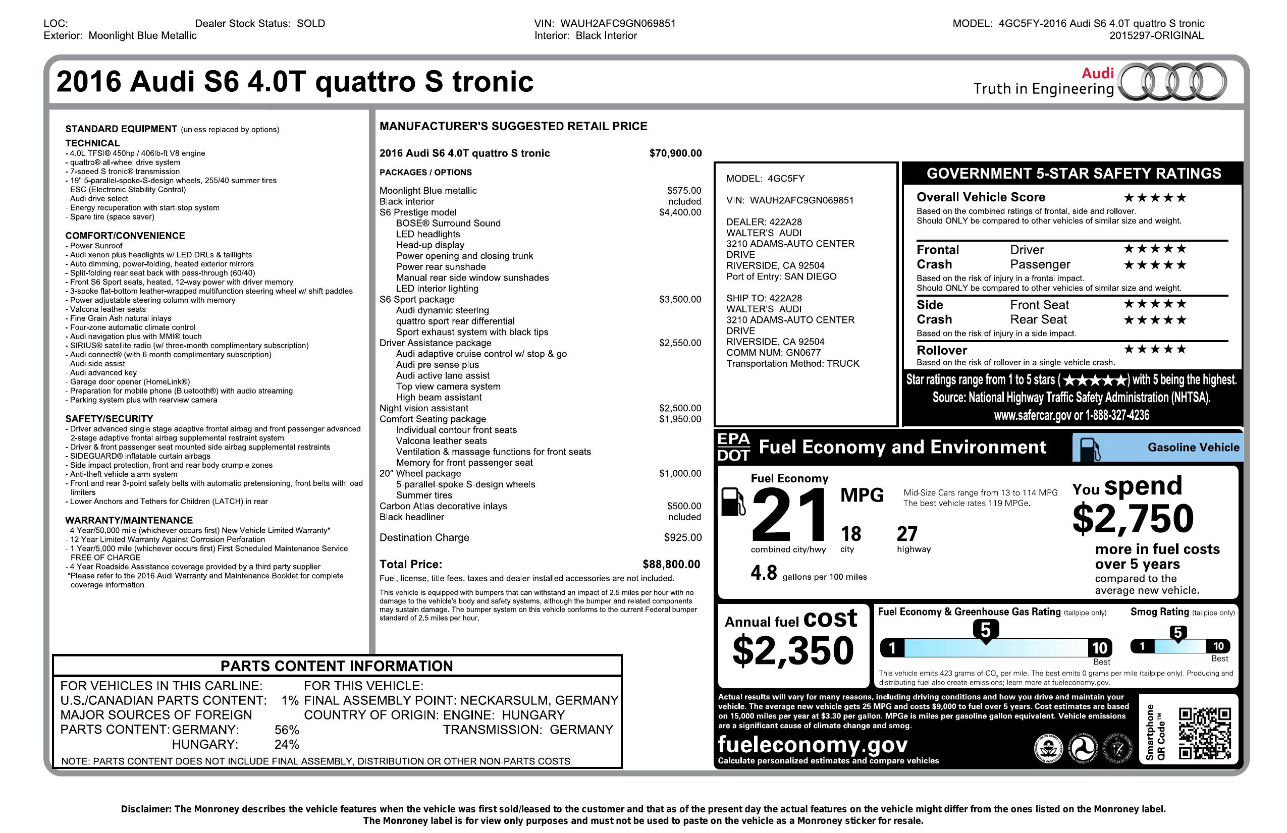 2016 Audi S6 Prestige Sedan 4 D