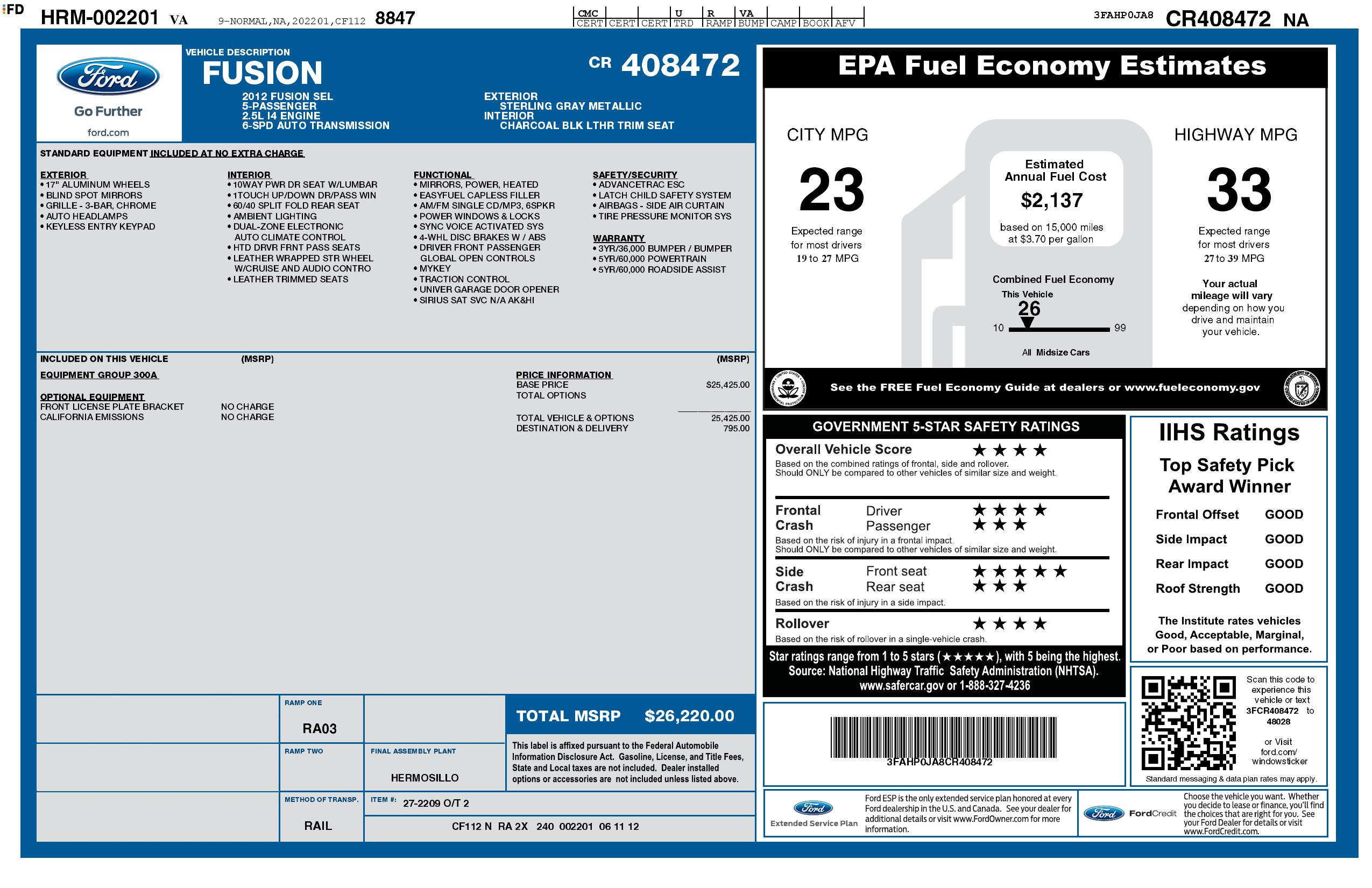 2012 Ford Fusion 4dr Sdn Sel Fwd