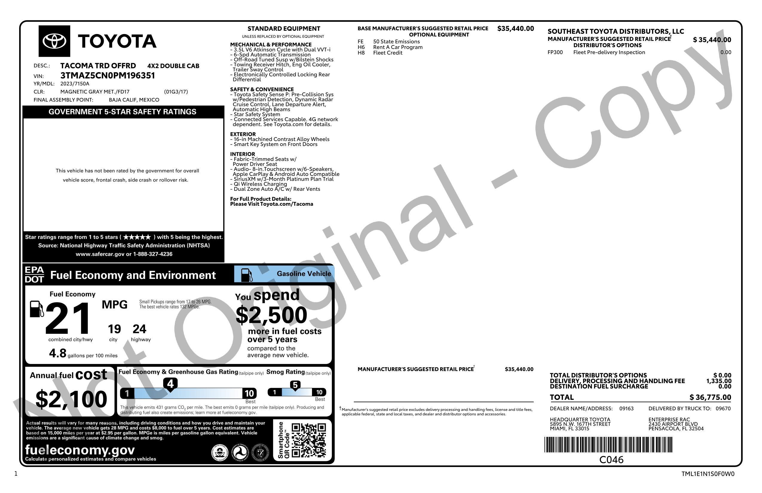 2023 Toyota Tacoma 2 Wd Double Cab 5' Bed V6 At (Natl)