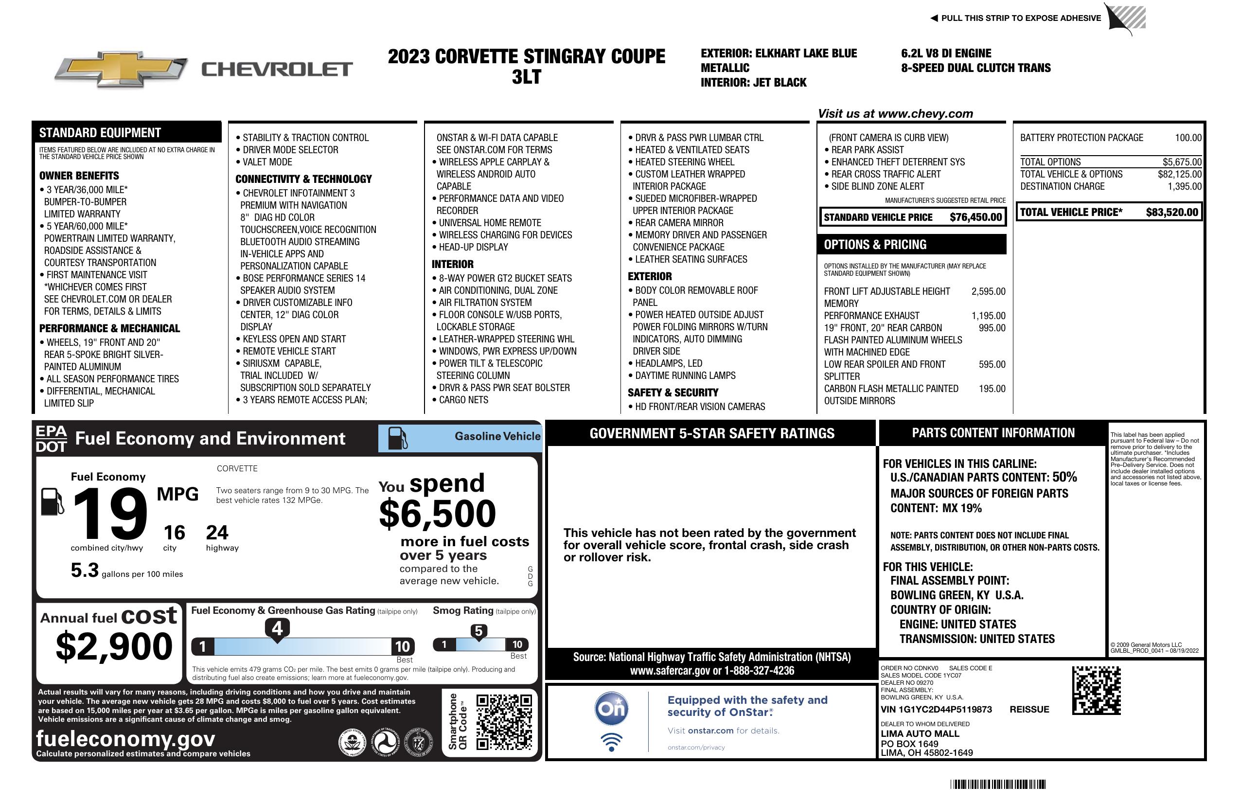 2023 Chevrolet Corvette 2dr Stingray Cpe W/3 Lt