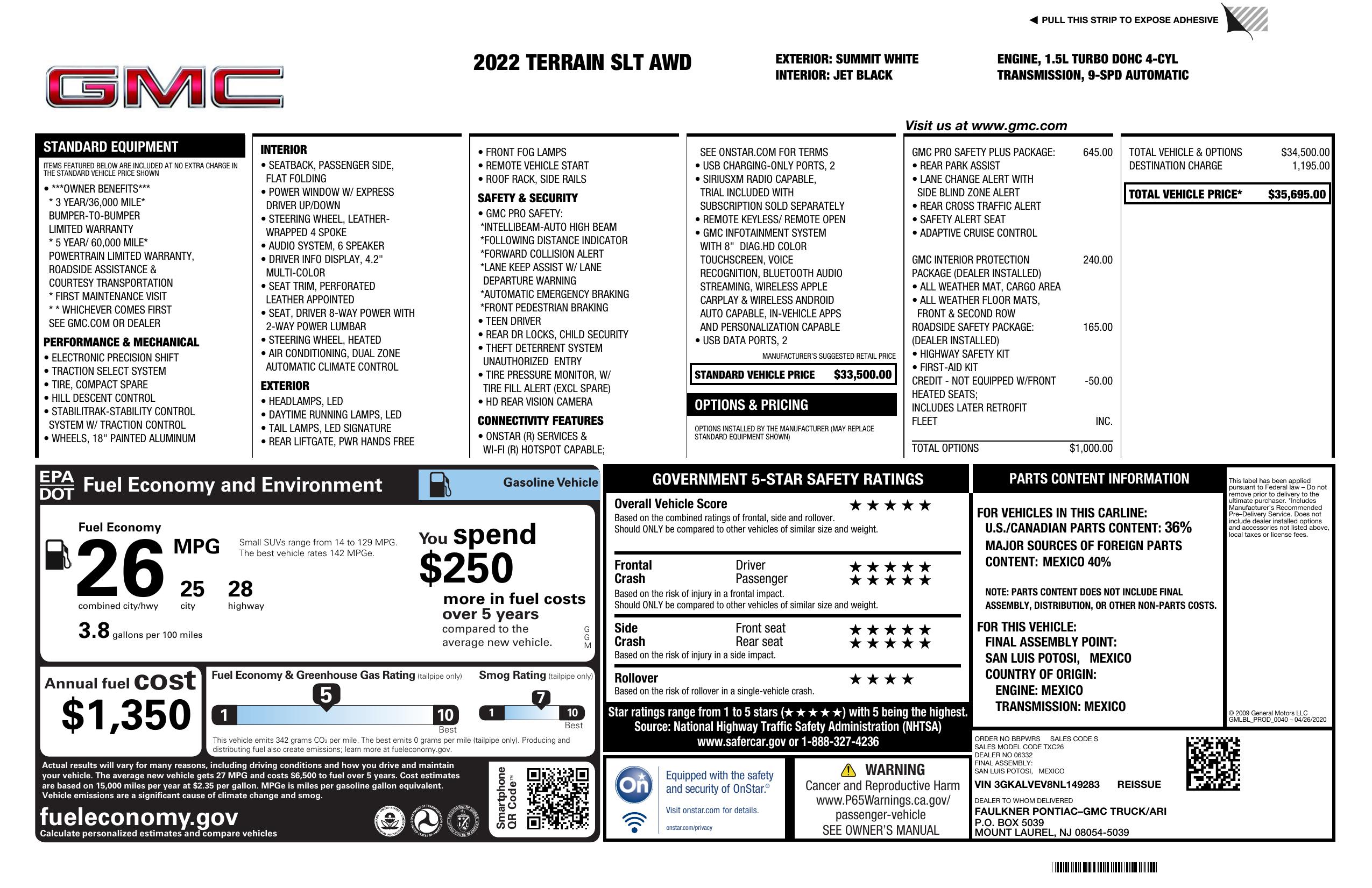 2022 GMC Terrain Awd 4dr Slt