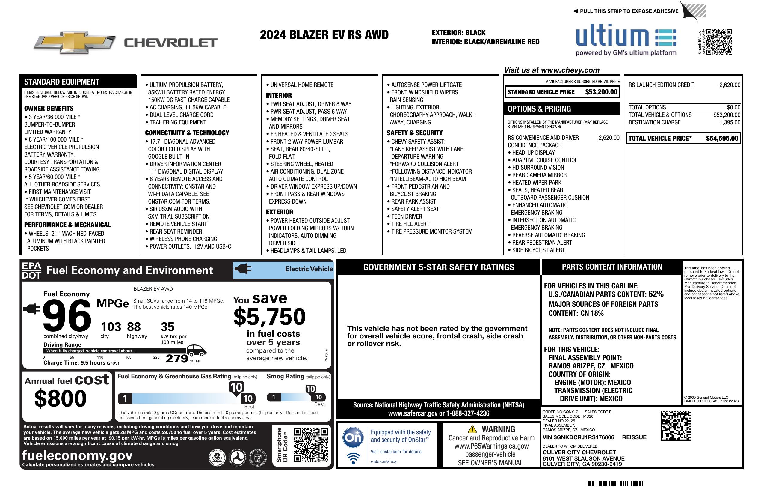 2024 Chevrolet Blazer Ev E Awd 4dr Rs W/1 Rs