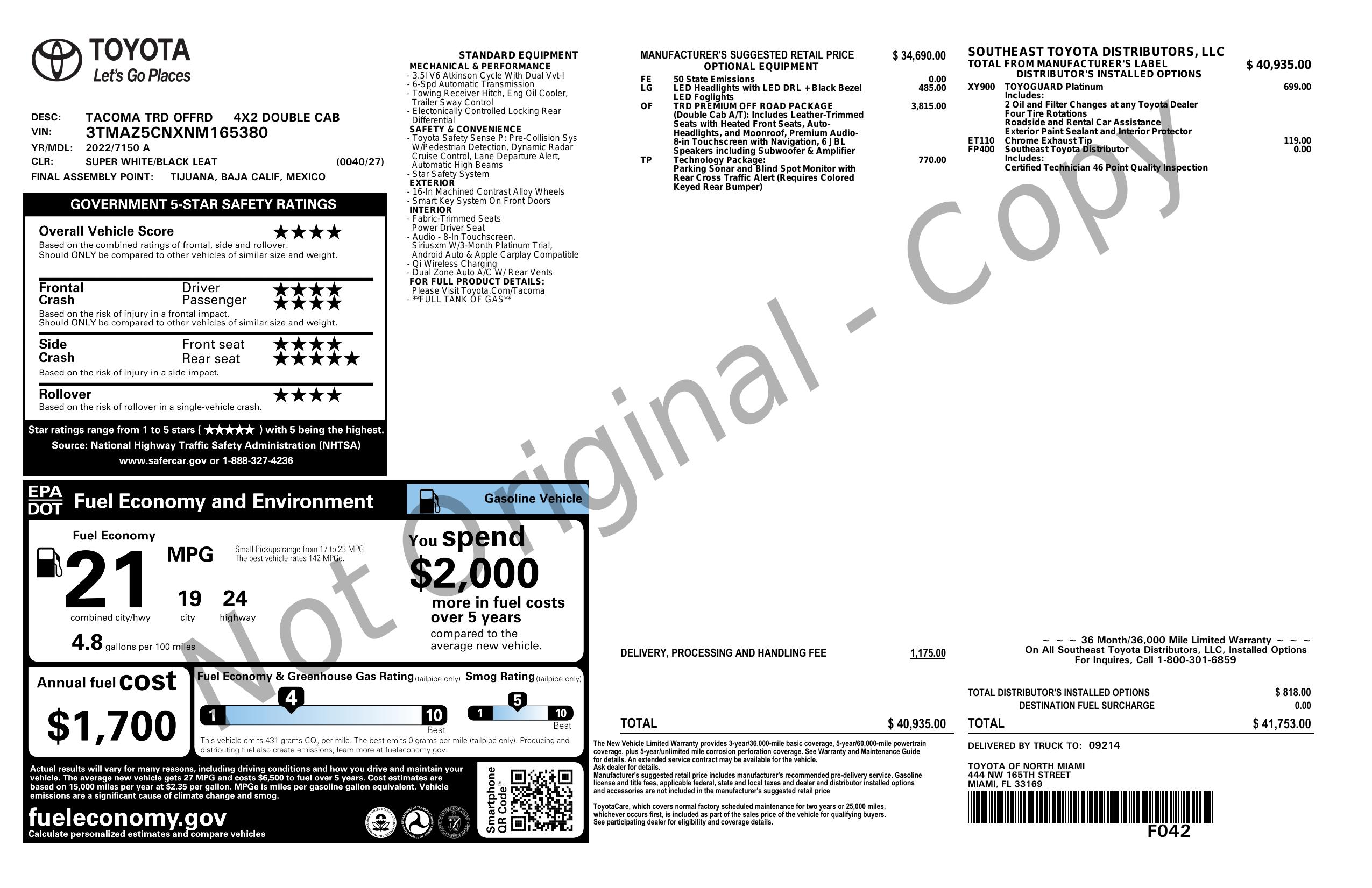 2022 Toyota Tacoma 2 Wd Double Cab 5' Bed V6 At (Natl)