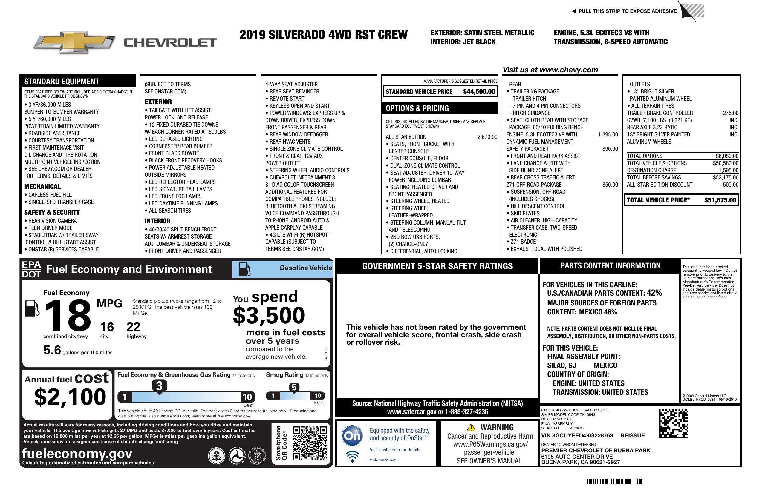 2019 Chevrolet Silverado 1500 4 Wd Crew Cab 147" Rst