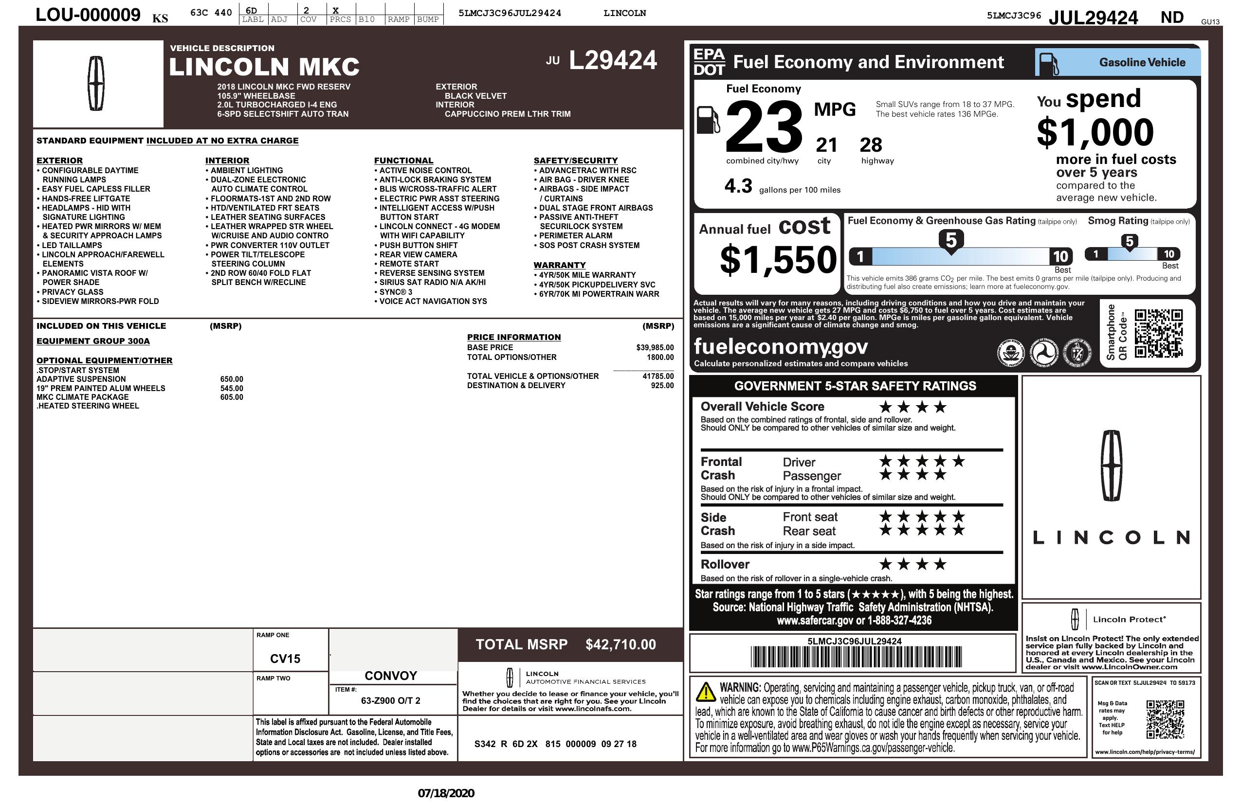 2018 Lincoln Mkc Reserve Fwd