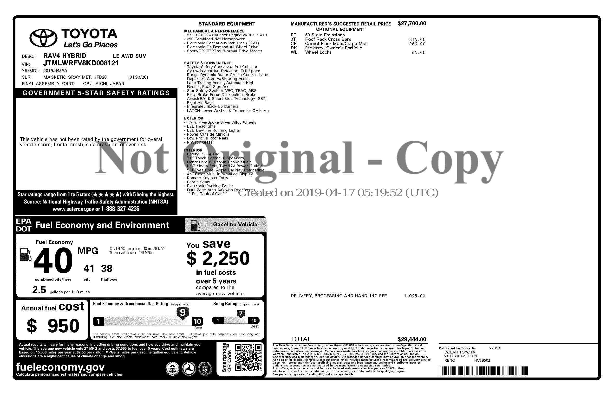 2019 Toyota Rav4 Hybrid Le Awd (Natl)