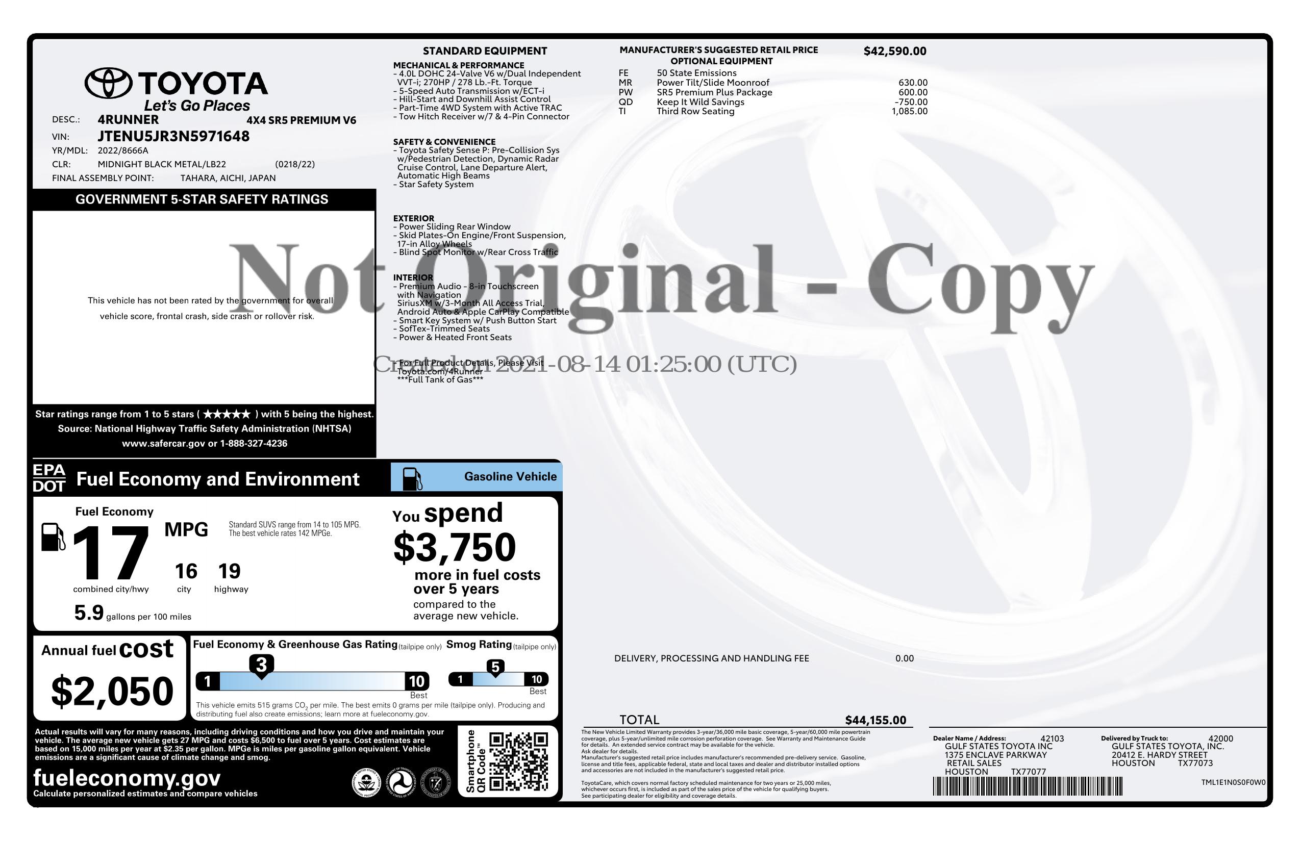 2022 Toyota 4 Runner Sr5 Premium 4 Wd (Natl)