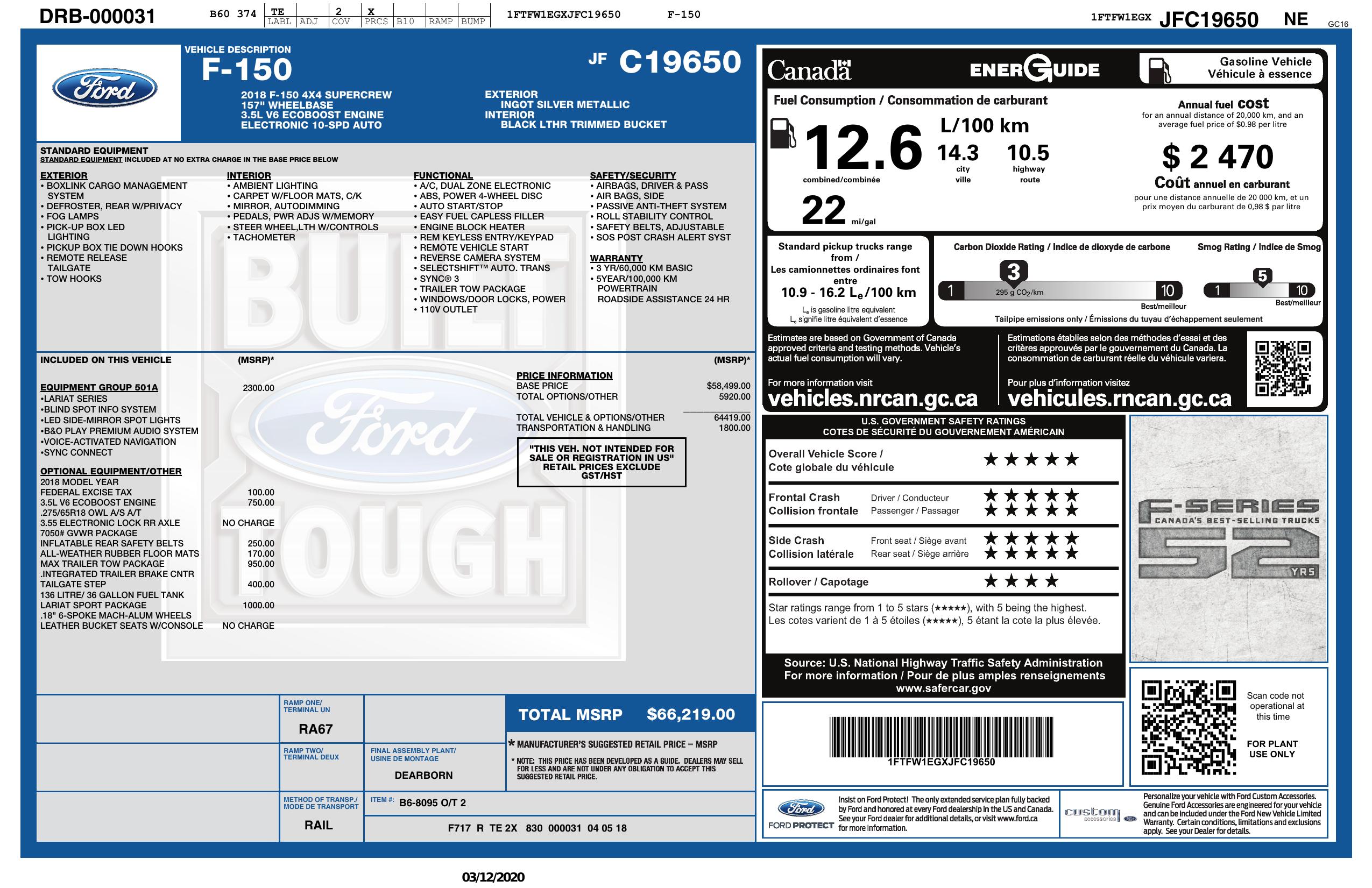 2018 Ford F 150 Lariat 4 Wd Super Crew 6.5' Box