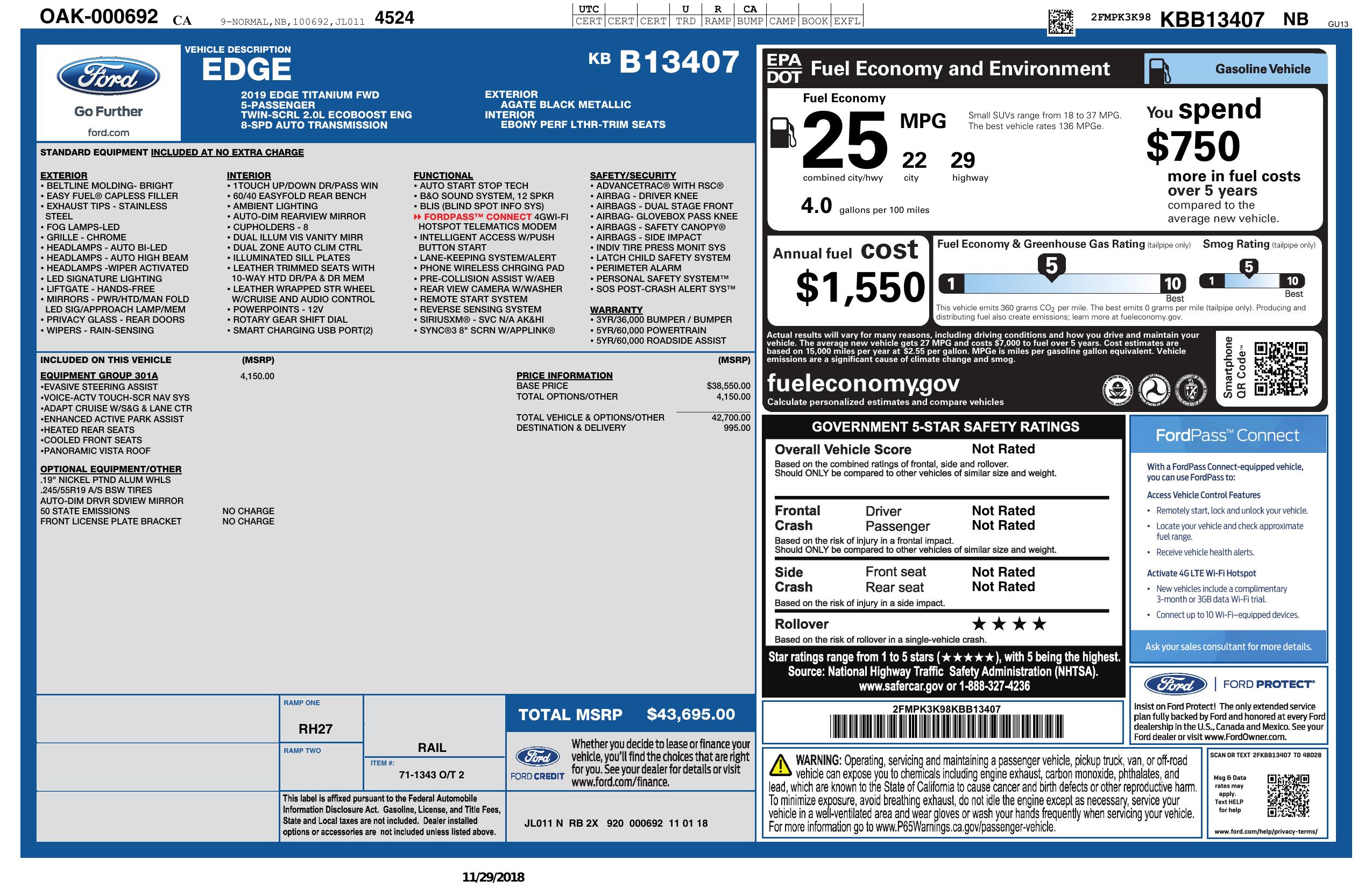 2019 Ford Edge Titanium Fwd