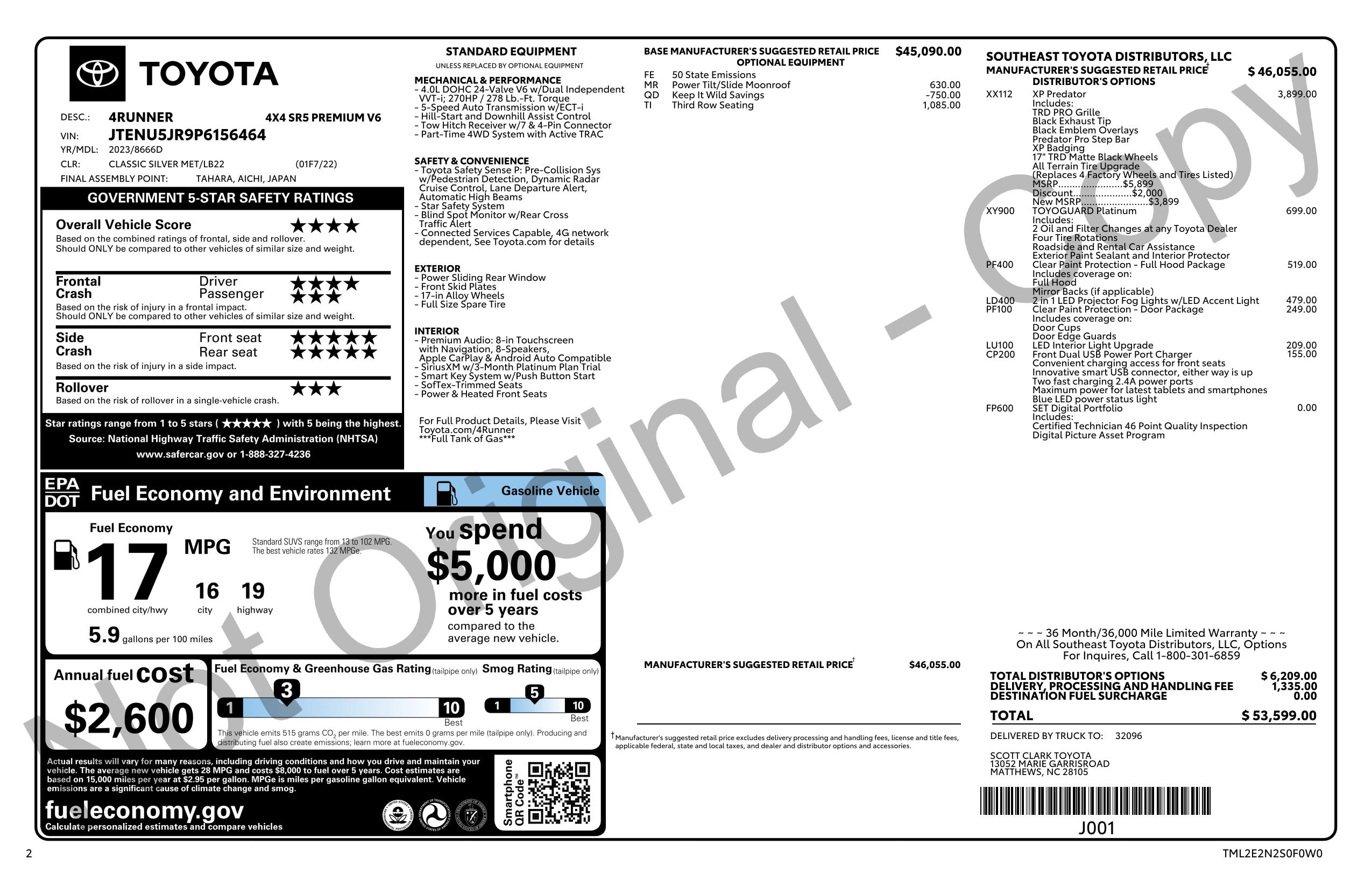 2023 Toyota 4 Runner Sr5 Premium 4 Wd (Natl)