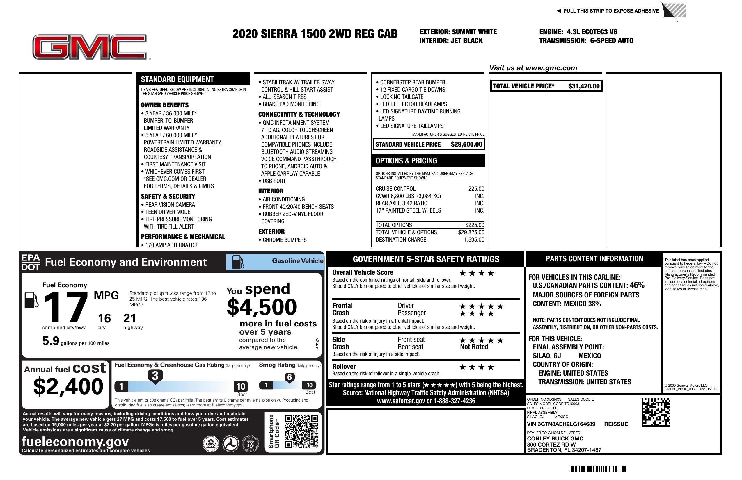 2020 GMC Sierra 1500 2 Wd Reg Cab 140"