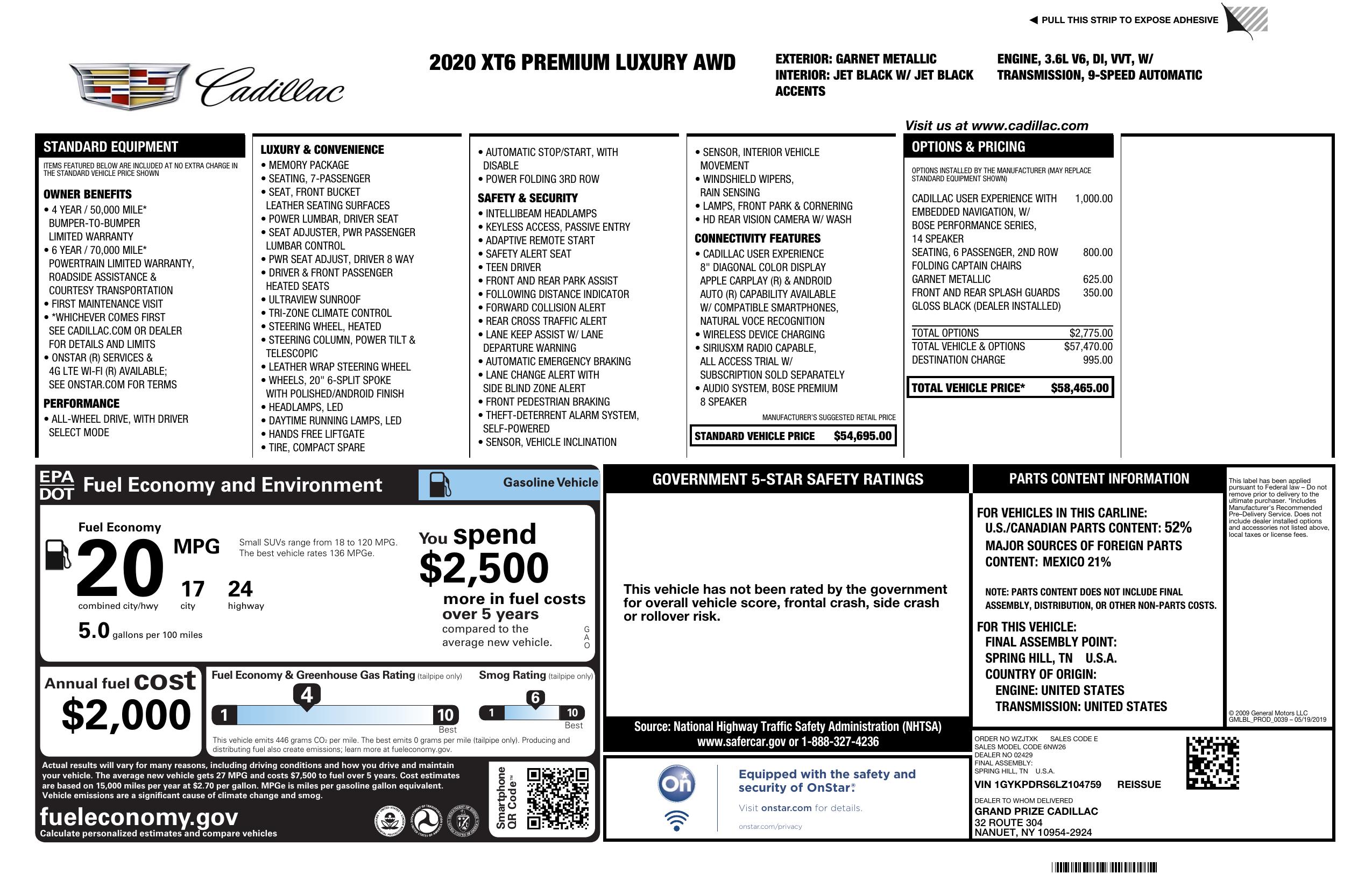2020 Cadillac Xt6 Awd 4dr Premium Luxury