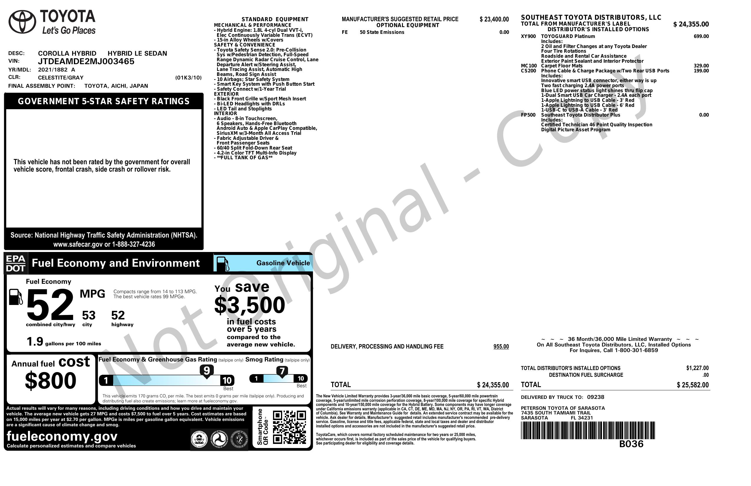 2021 Toyota Corolla Hybrid Le Cvt (Natl)