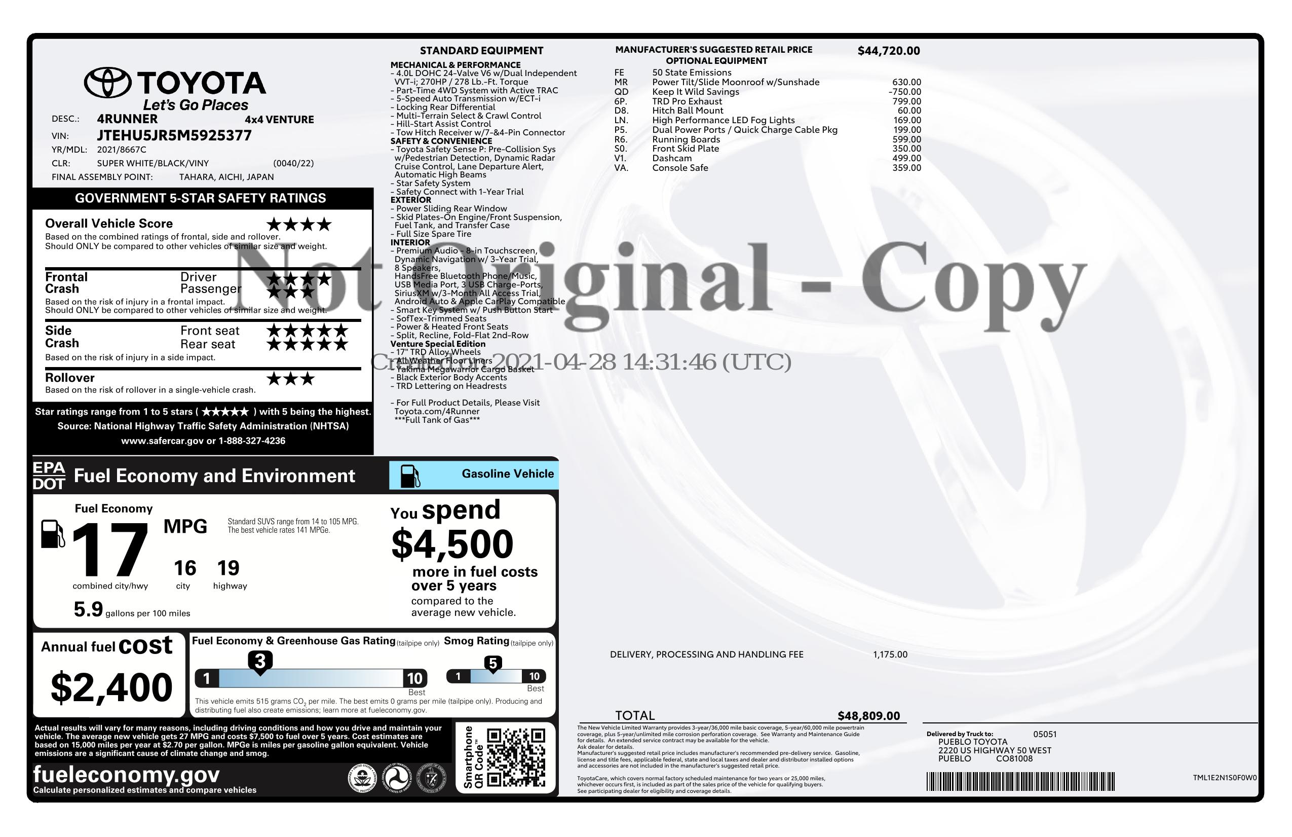 2021 Toyota 4 Runner Venture 4 Wd (Natl)