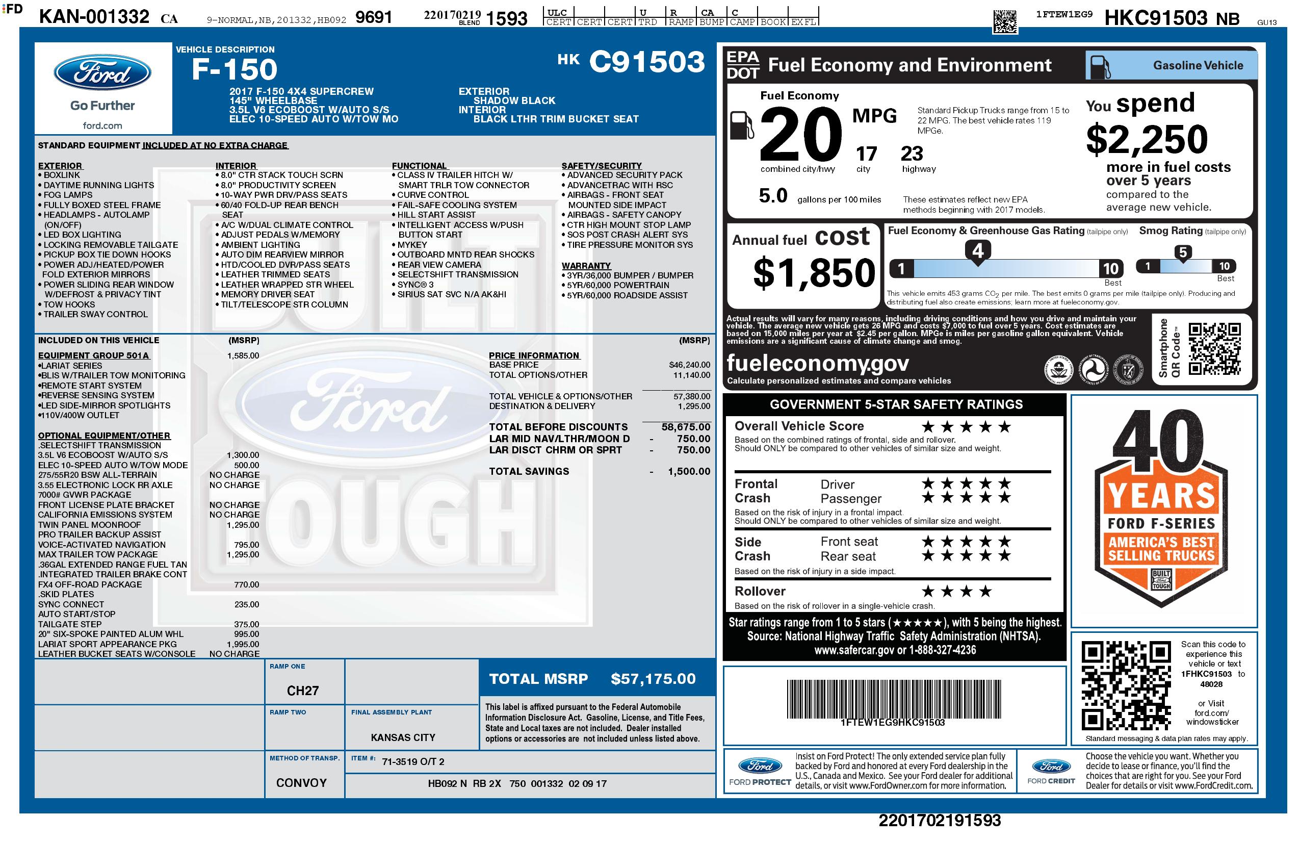 2017 Ford F 150 Lariat 4 Wd Super Crew 5.5' Box