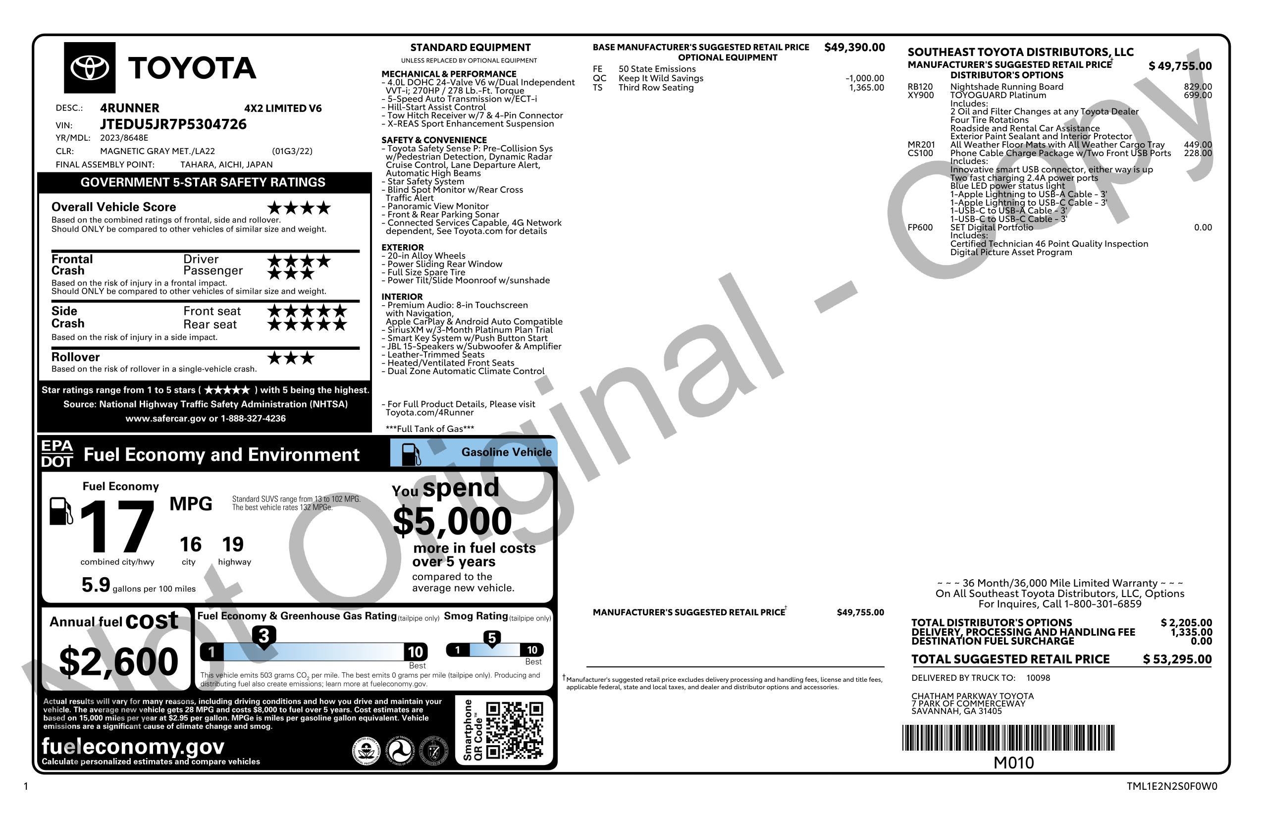 2023 Toyota 4 Runner Limited 2 Wd (Natl)