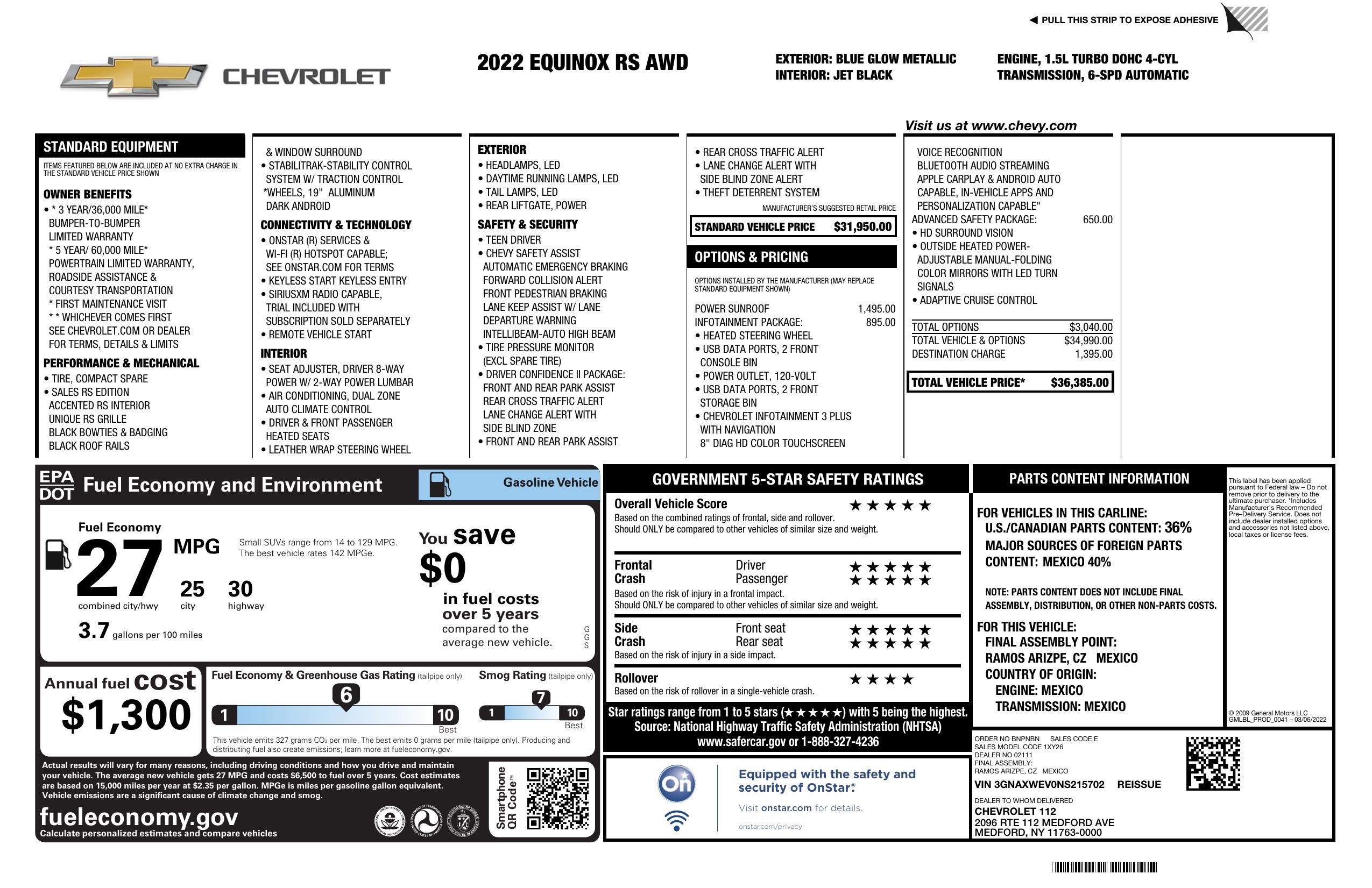 2022 Chevrolet Equinox Awd 4dr Rs