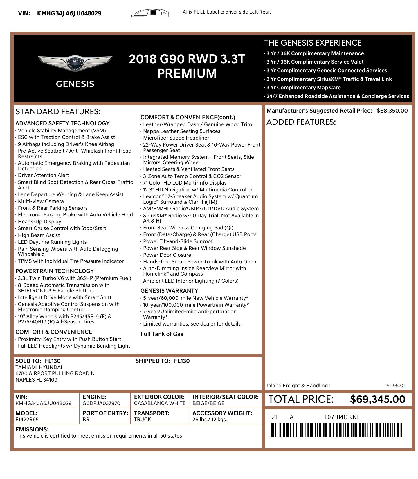 2018 Genesis G90 3.3 T Premium 4dr Sedan