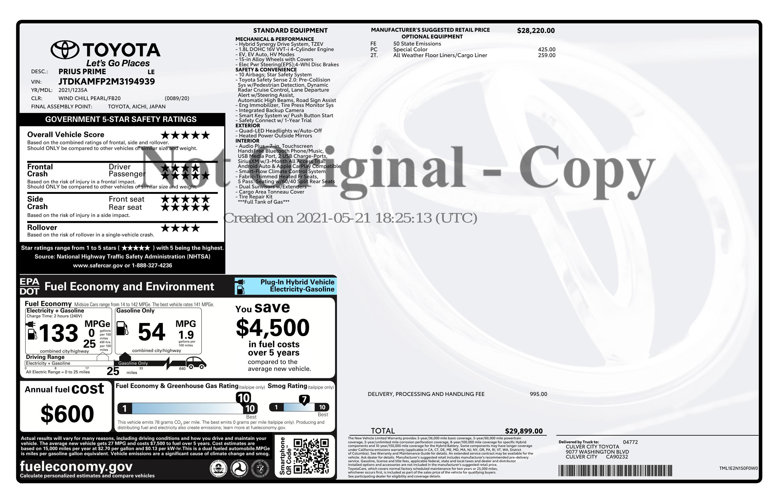 2021 Toyota Prius Prime Le