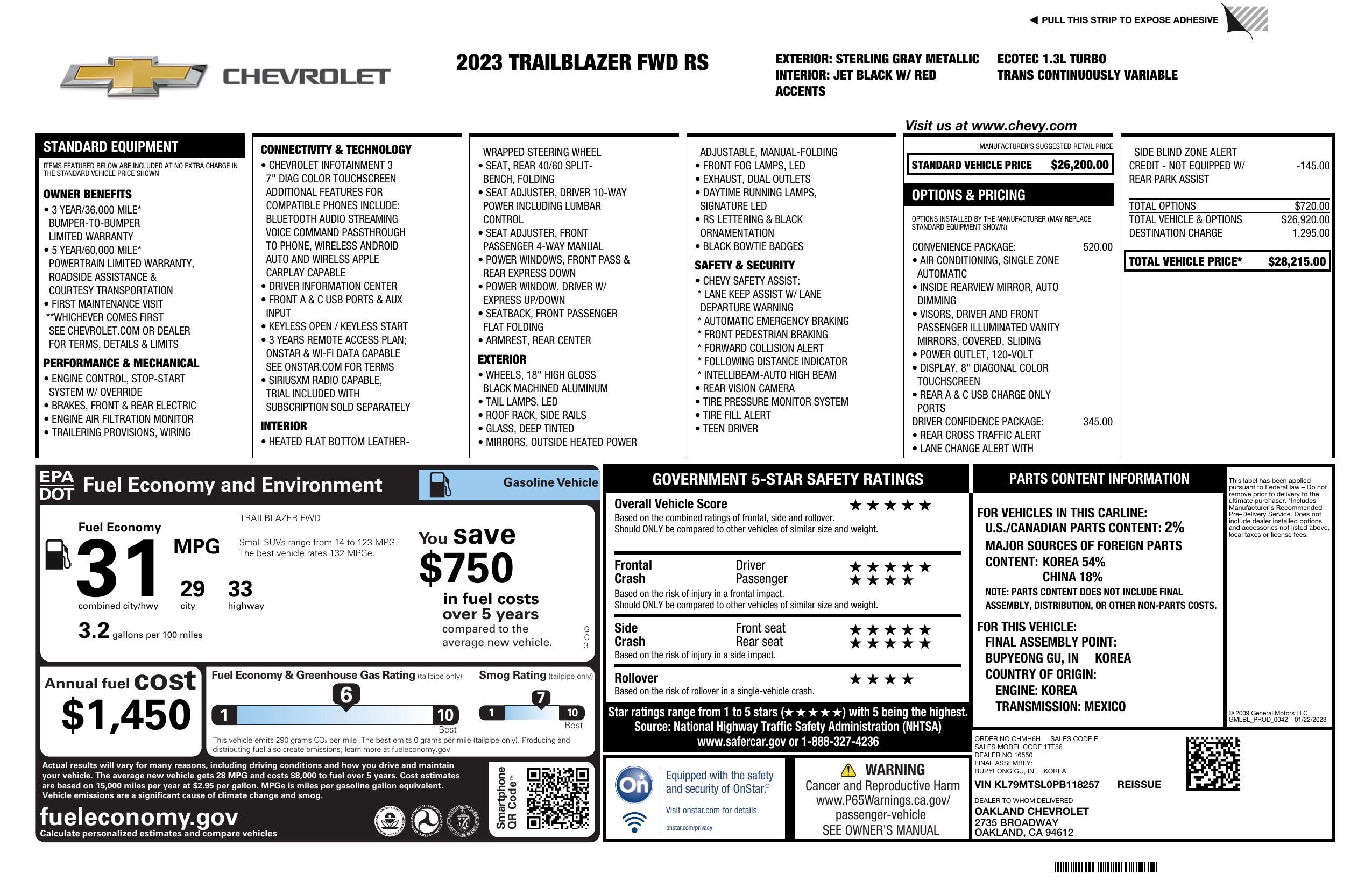 2023 Chevrolet Trailblazer Fwd 4dr Rs