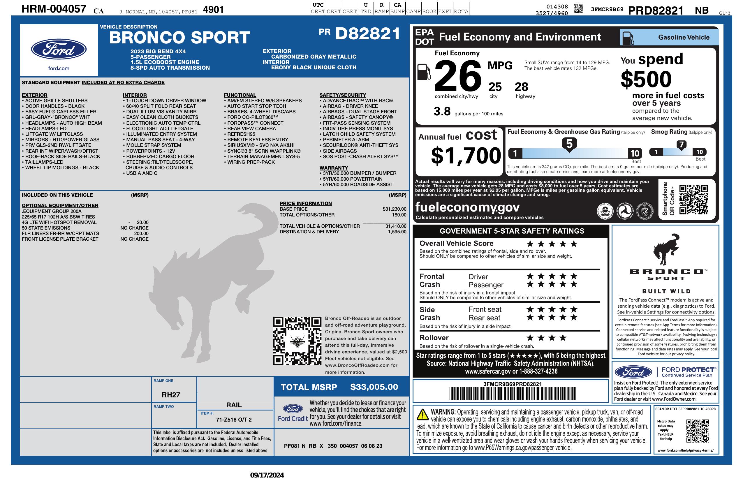 2023 Ford Bronco Sport Awd Big Bend 4dr Suv