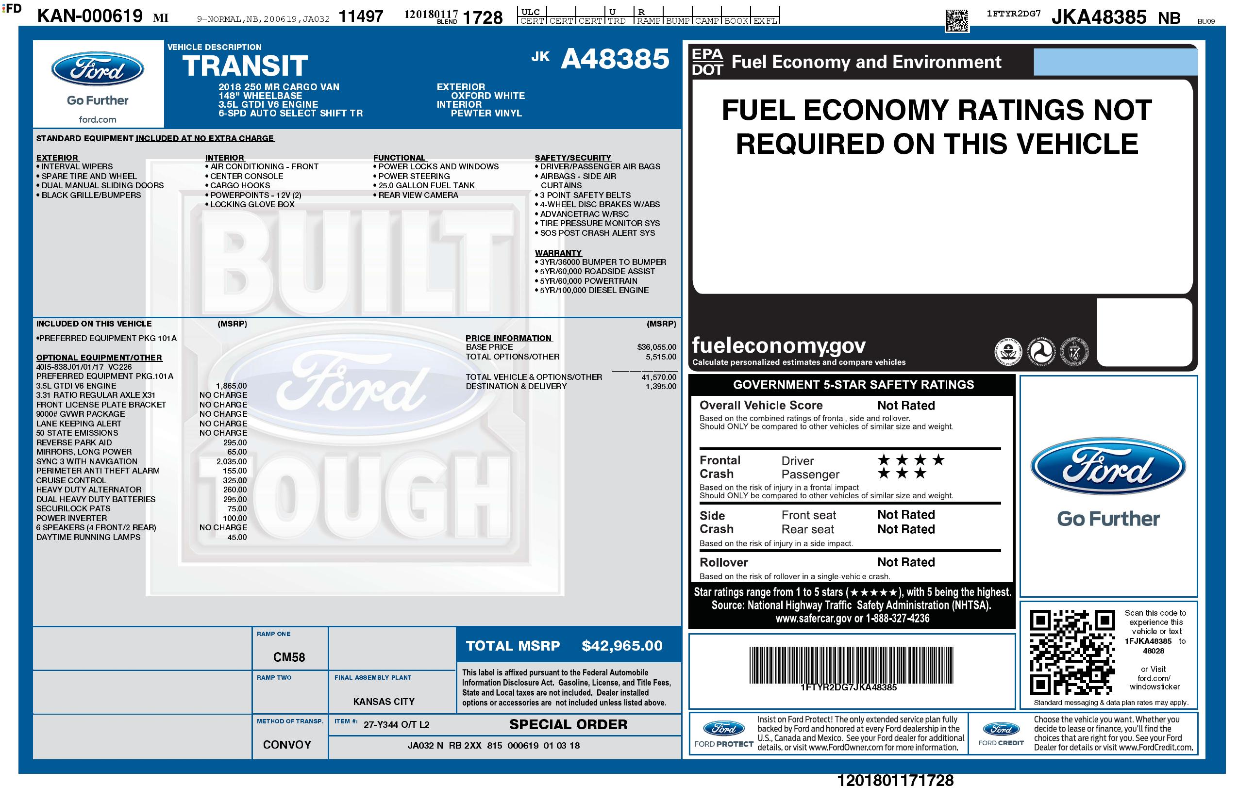 2018 Ford Transit Van T 250 148" Med Rf 9000 Gvwr Dual Dr