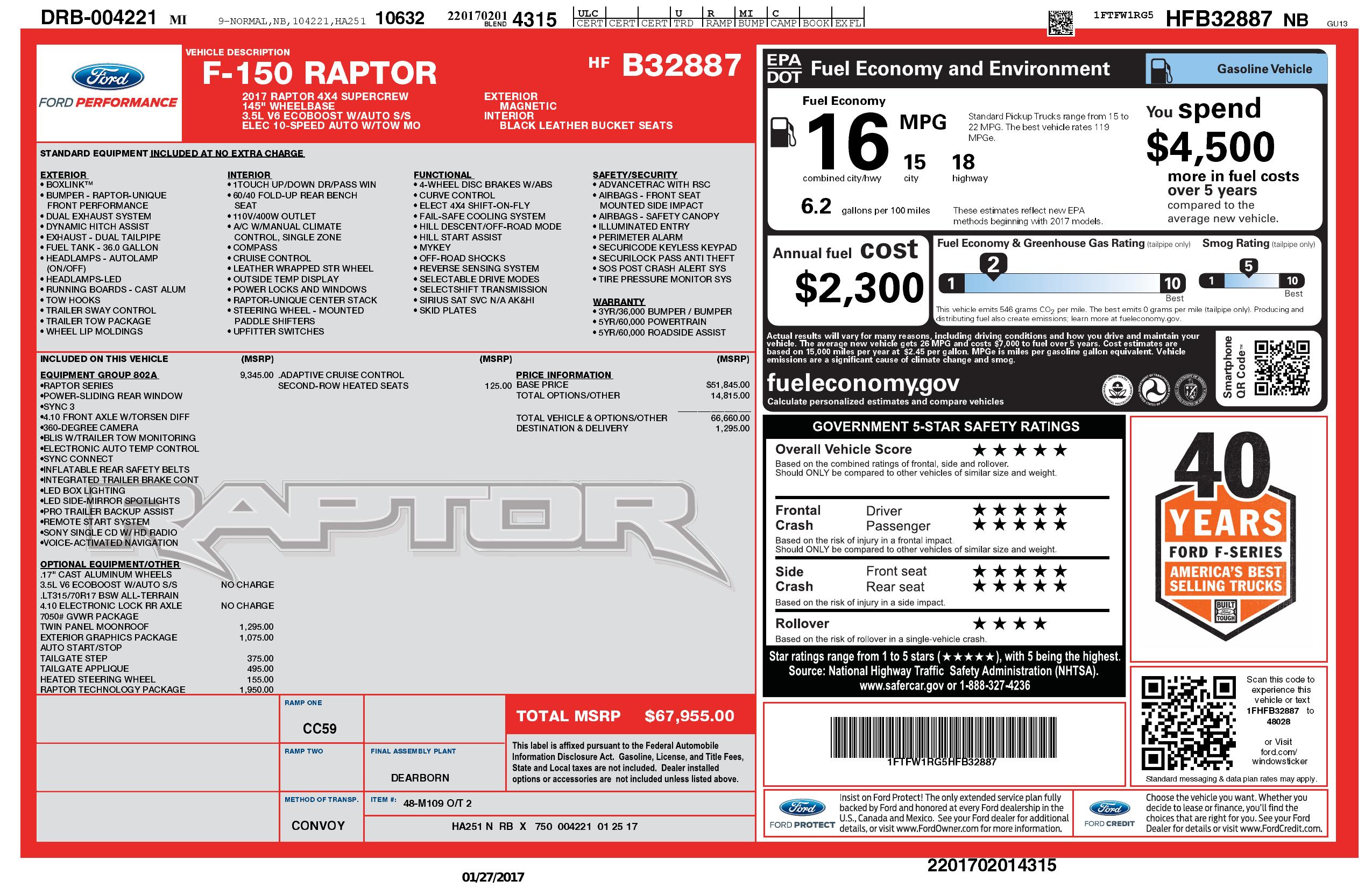 2017 Ford F 150 Raptor 4 Wd Super Crew 5.5' Box