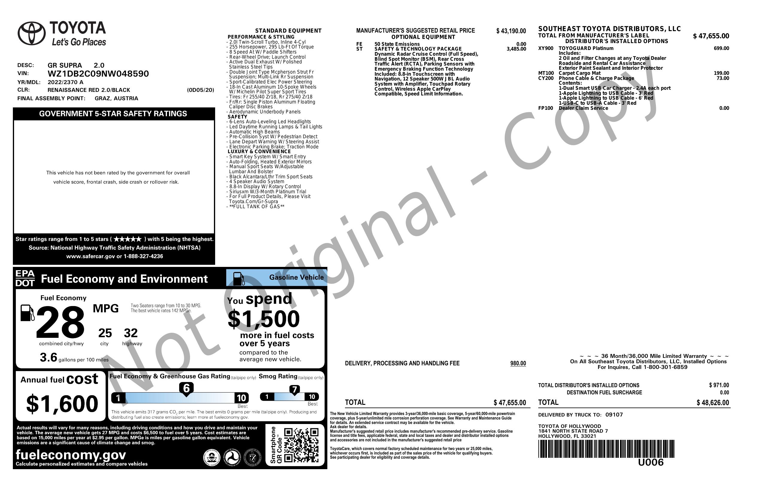 2022 Toyota Gr Supra 2.0 Auto (Natl)