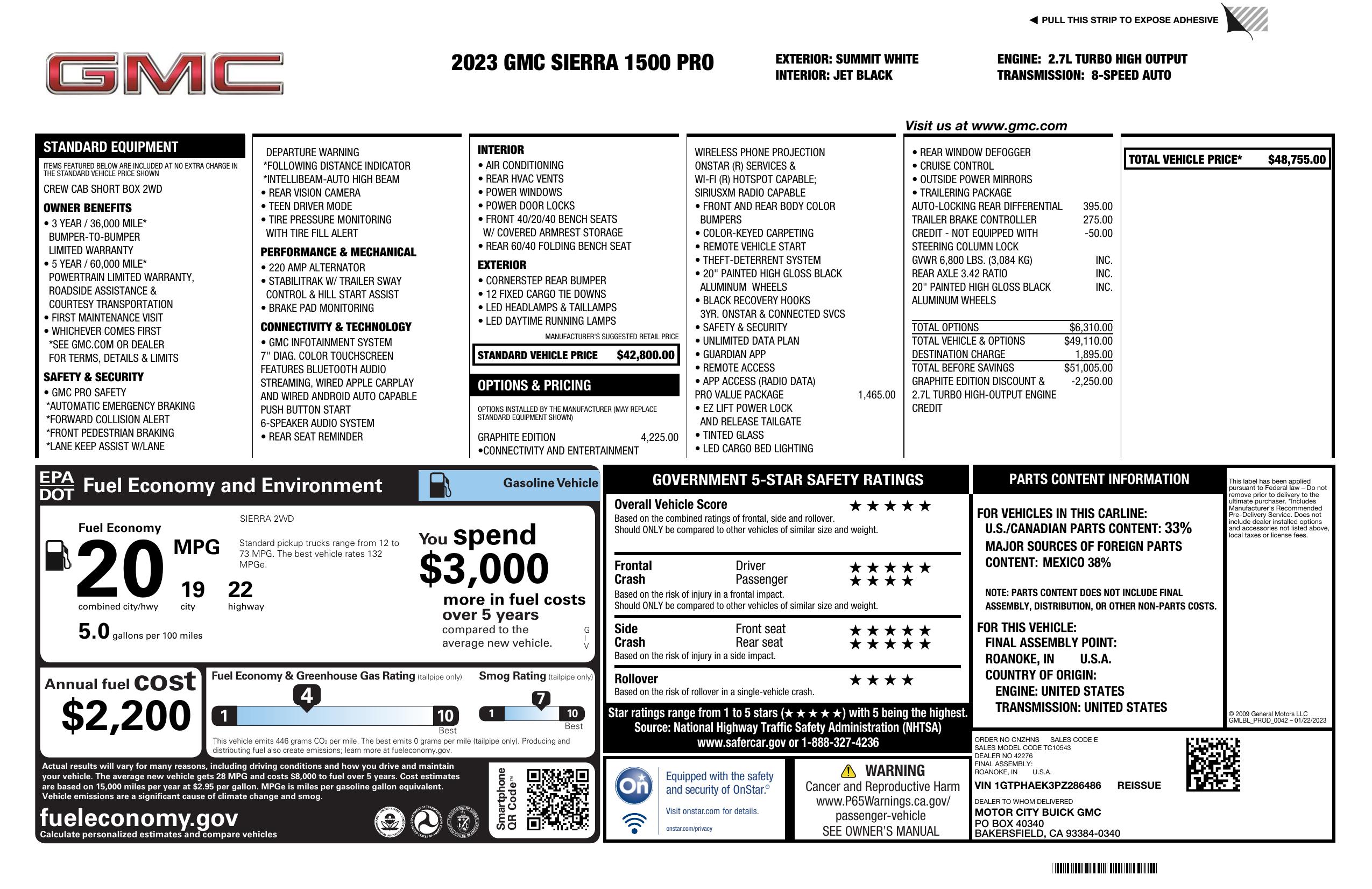 2023 GMC Sierra 1500 2 Wd Crew Cab 147" Pro