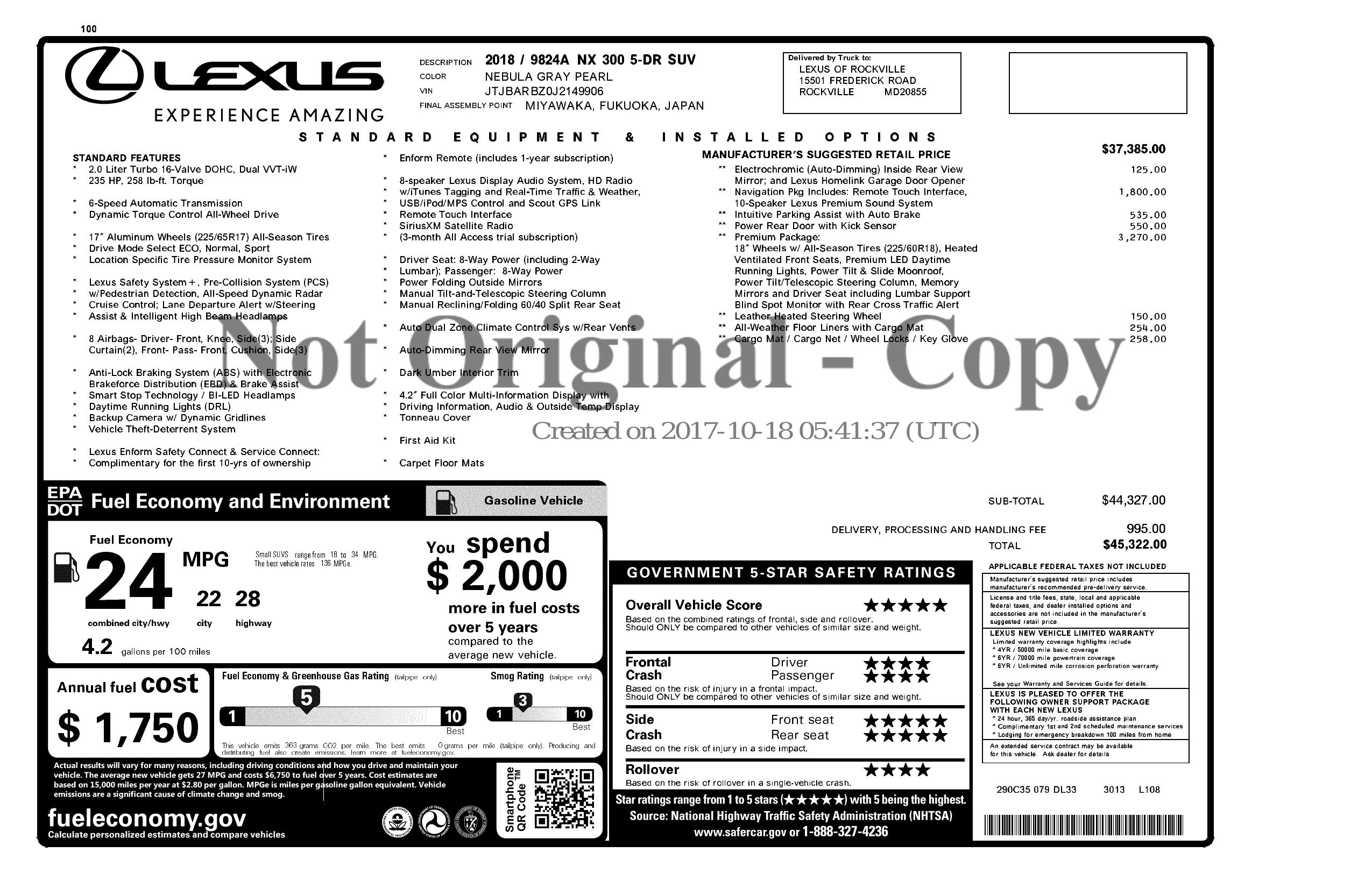 2018 Lexus Nx 300 Awd