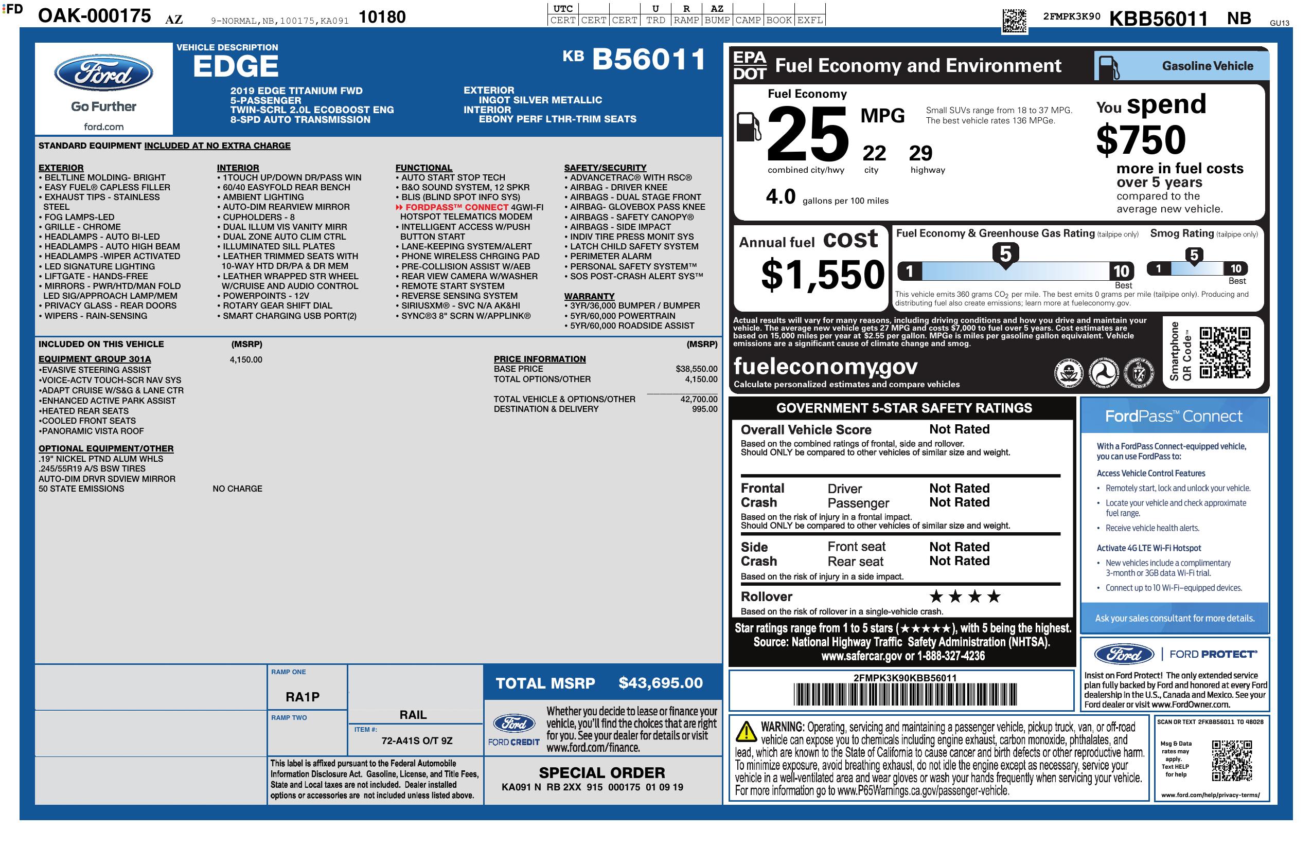 2019 Ford Edge Titanium Fwd