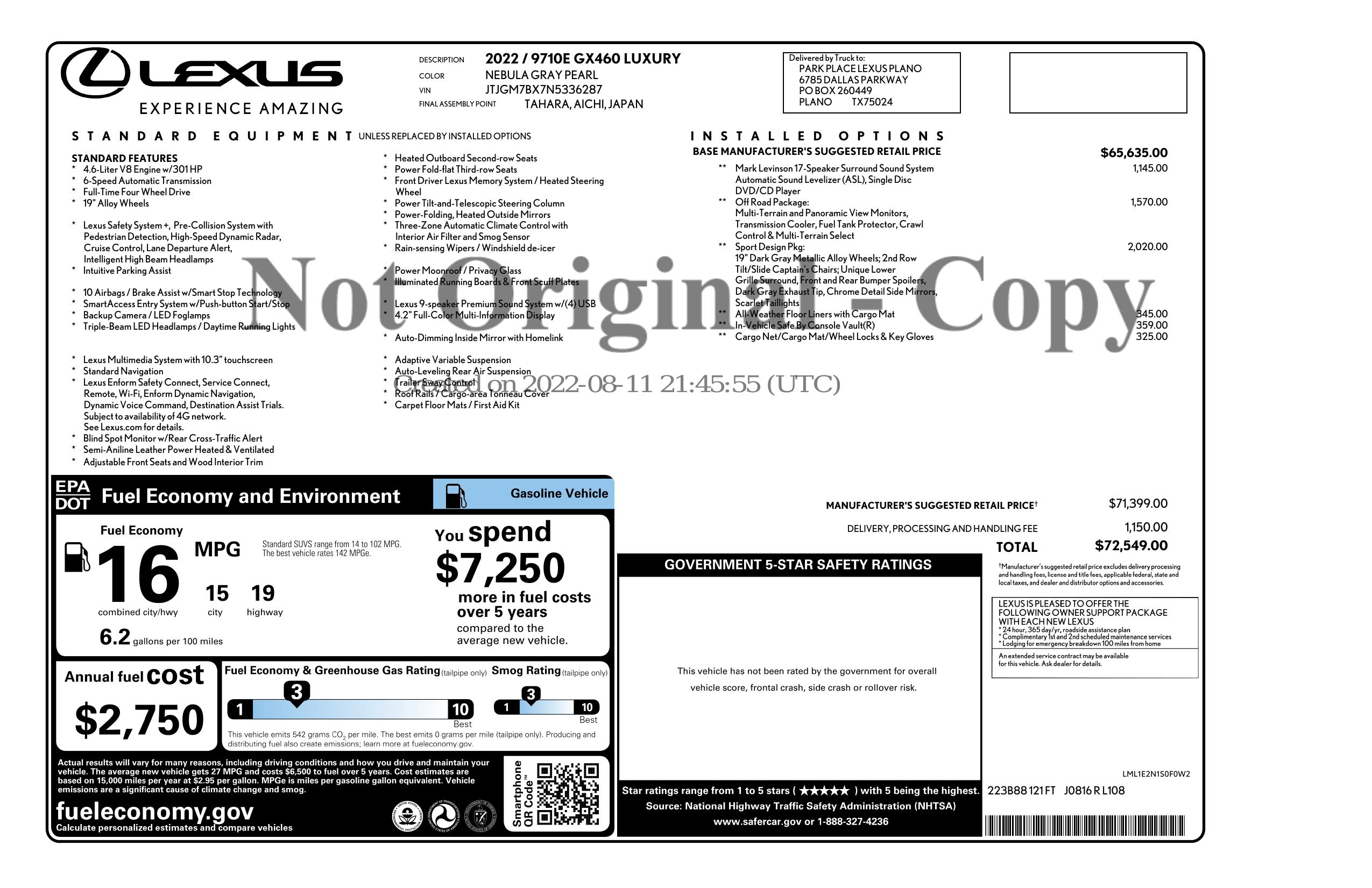 2022 Lexus Gx Gx 460 Luxury 4 Wd