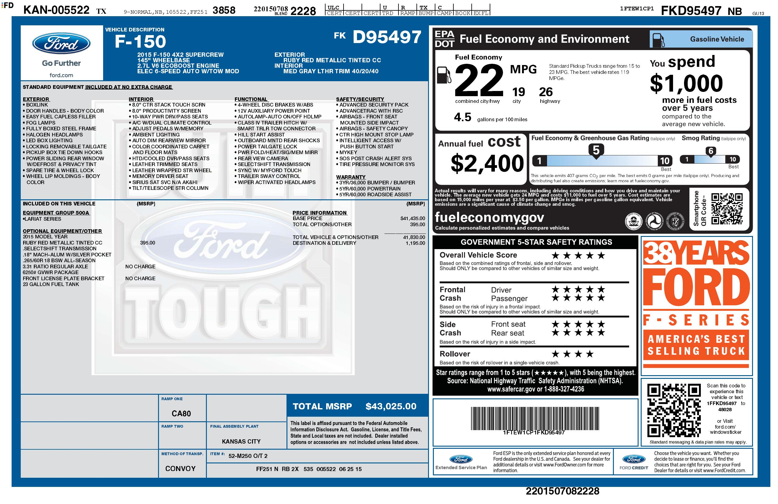 2015 Ford F 150 2 Wd Super Crew